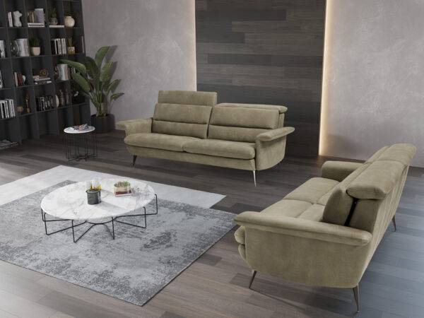 Գործվածքե կամ կաշվե բազմոց, ունիվերսալ չափսերով, մանրուքների նկատմամբ մեծ ուշադրությամբ, «օճառի սալիկի» ձև հիշեցնող նստատեղով, մոդելի կողային տեսքն իր տեսակի մեջ եզակի դարձնող, բազկակալից դուրս ցցված բարձիկներով: Բարձրորակ երեսպատումով և բազկակալի վրա հատուկ կամարաձև կարվածքով: