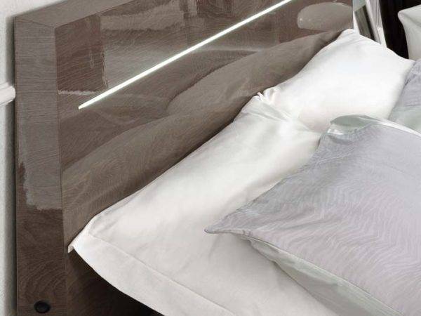 Ժամանակակից մահճակալ Luna պահոցով և ադամանդաձև փայտյա ետնամասով