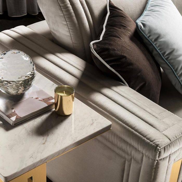 Atmosfera բազմոցները ոչ միայն հարմարավետ են, այլ նաև ունեն շլացնող տեսք ոսկե դետալների շնորհիվ, որ չի թողնի անտարբեր ոչ մի այցելուի: Իսկ հորիզոնական երկրաչափական բացվածքը ավելի էլեգանտ է դարձնում կահույքը: