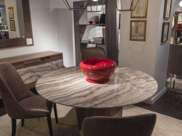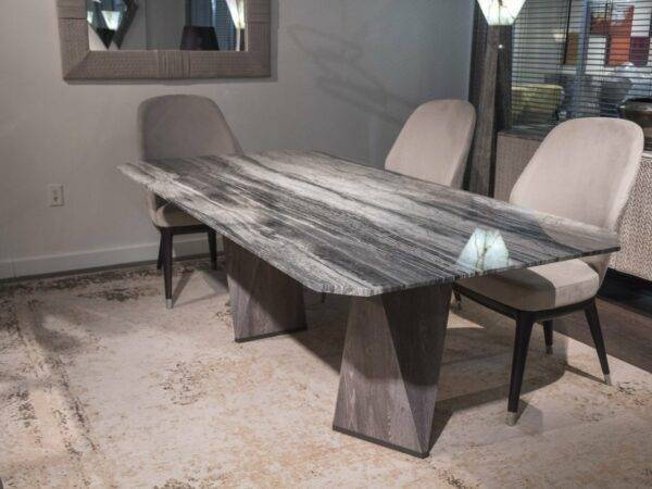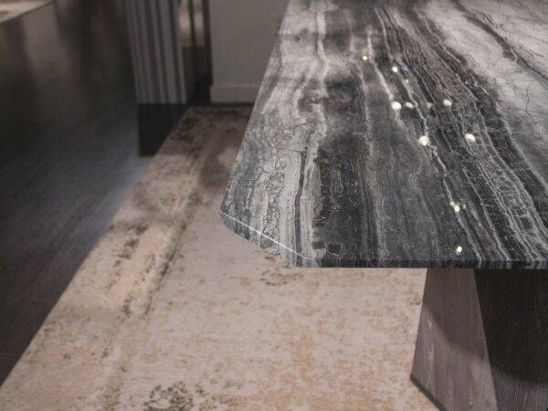 Սեղանի մակերեսը ունի հետաքրքիր կորություն և յուրահատուկ կտրվածք, որը գեղեցիկ համադրելի է ոտքերի հետ: