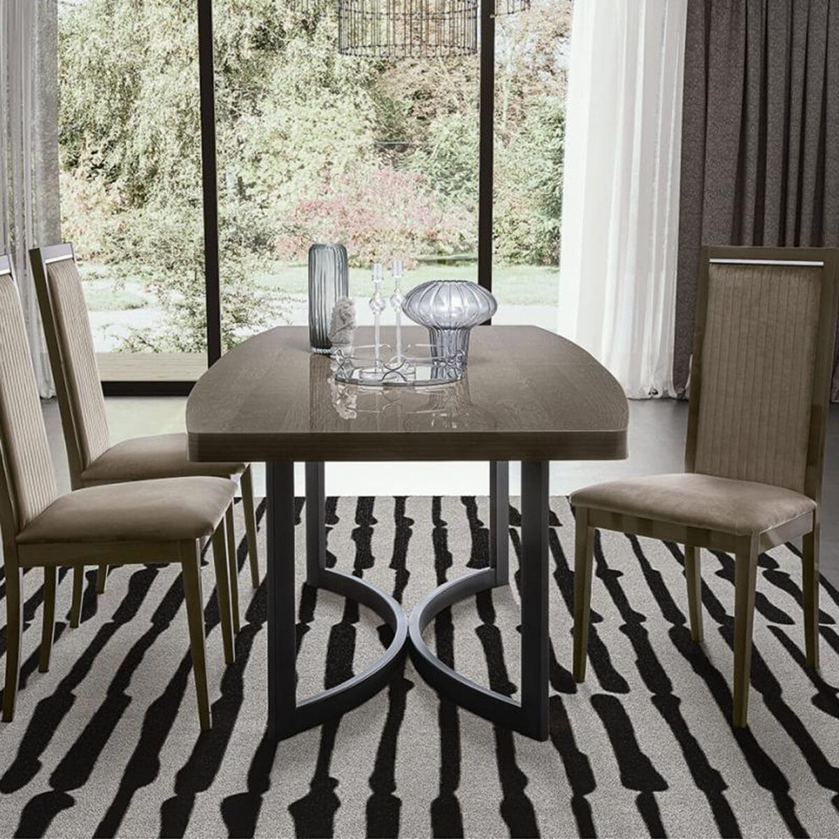 Շքեղ, կոր գծերը բարդ և հարուստ տեսք են հաղորդում տան ինտերիերին։ Դարակի կենտրոնական հատվածը պատված է նյութով, որը նման է կաշվի և ունի փակվող փափուկ համակարգ: