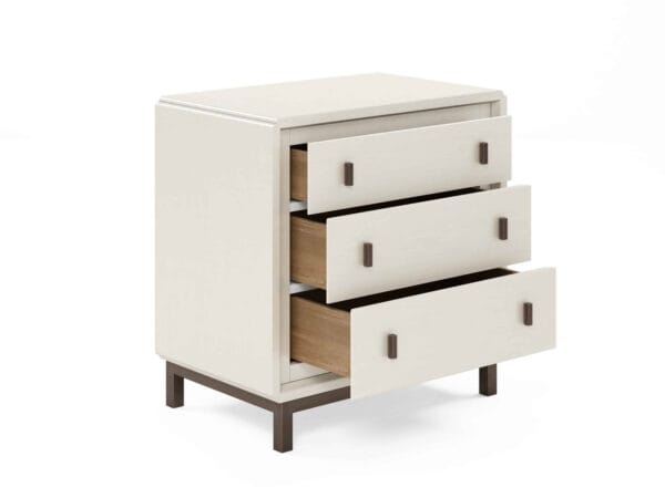 Շքեղ և յուրահատուկ։ Այս երեք դարակով լամպի սեղանը մահճակալին հաղորդում է ժամանակակից նրբագեղություն: Նրա պարզ, ժամանակակից գծերը կատարելապես լրացվում են ալաբաստե սվաղային նրբագեղ ծածկույթով և ուղղահայաց բռնակների ու ստորին շրջանակի փայլեցված բրոնզե նուրբ հակադրությամբ: