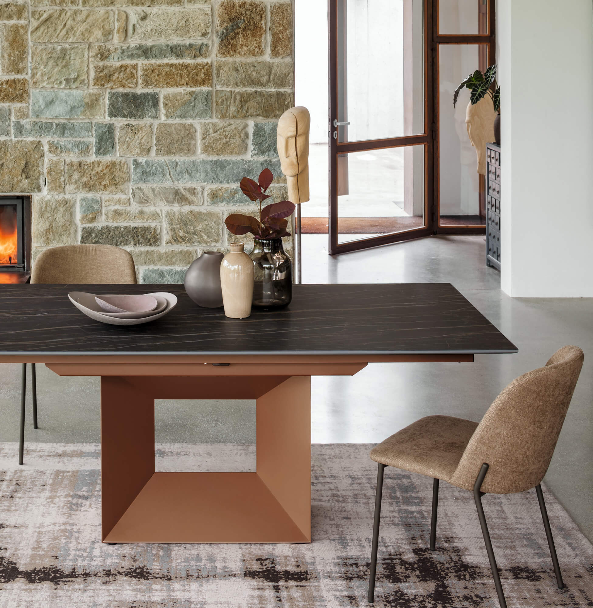 Մետաղական շրջանակով աթոռ՝ ծածկված փափուկ էկո կաշվով և նաբուկ էկո կաշվով։ Compar հավաքածուի աթոռները կարող են ինտեգրվել տարբեր տարածքների և ոճերի մեջ՝ շնորհիվ իրենց զուսպ և բացառիկ դիզայնի: