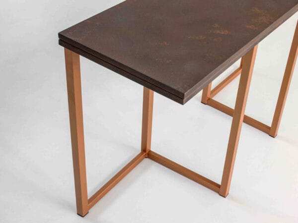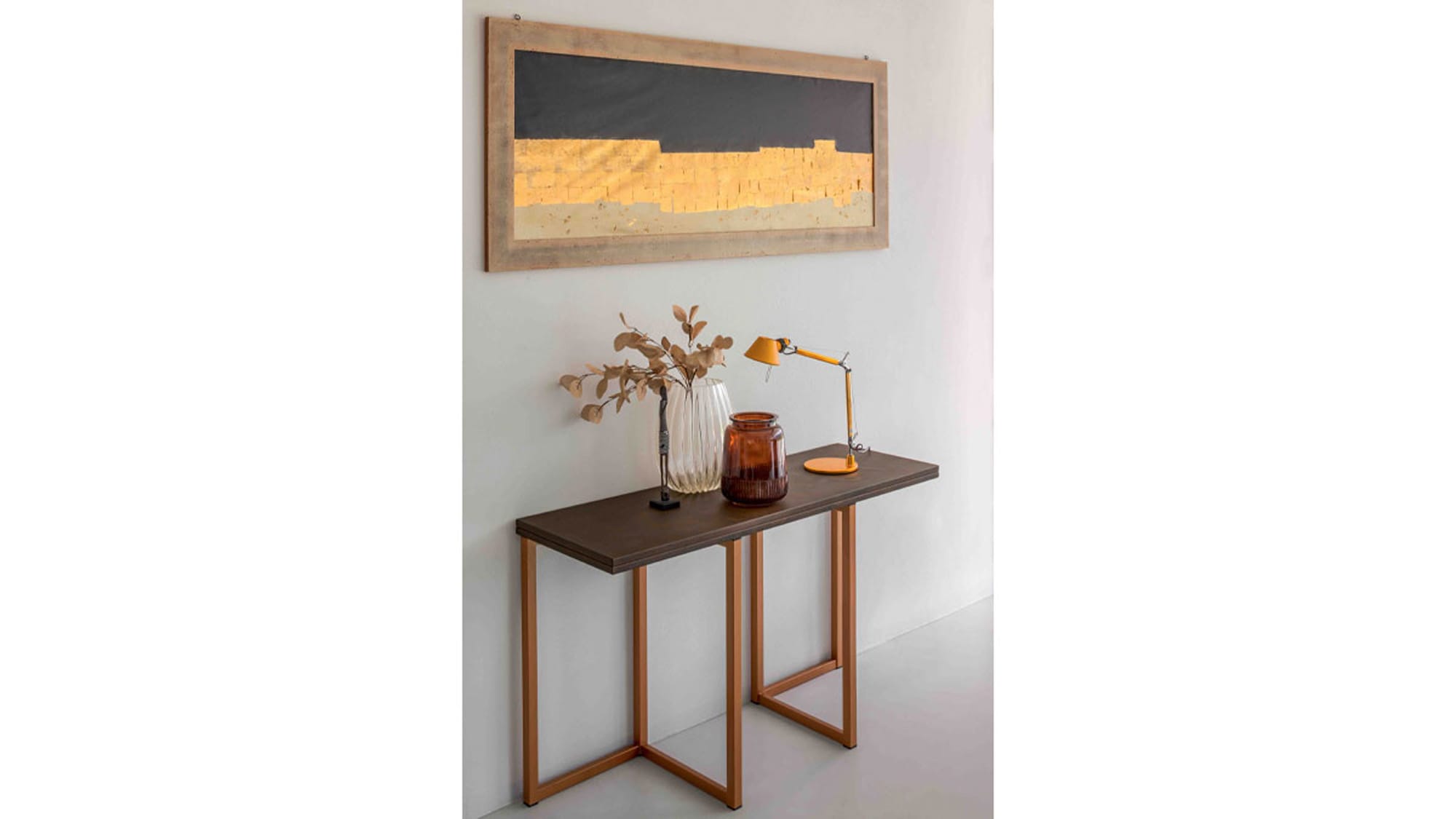 Flap-ը ժամանակակից, թրենդային, սև և սպիտակ լուծումներով մոդել է։ Բացվում է գրքի պես՝ հեշտությամբ վերափոխվելով ճաշասեղանի։ Հիանալի տարբերակ է նրանց համար,ովքեր փոփոխության սիրահար են։ Փոխակերպվող կոնսոլ սեղան՝ մետաղական կարկասով, երկակի մելամինե սեղաներես։