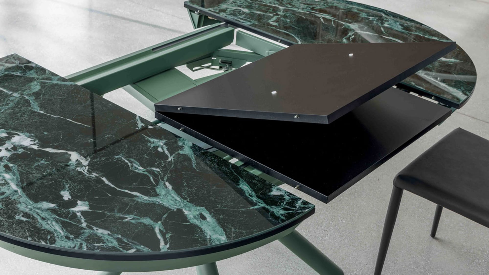 Helios-ը կլոր վերնամասով բազմաֆունկցիոնալ սեղան է թե՛ գործառույթով, թե՛ դիզայնով։Ունի հարմարեցված մեղանիզմ, որը հեշտությամբ բացվում և վերածվում է գեղեցիկ սուրճի սեղանից ճաշասեղանի՝ ընտանիքի և հյուրերի համար։Մետաղական հիմքը ստեղծում է տպավորիչ և հաճելի գծային տեսողական էֆեկտ: