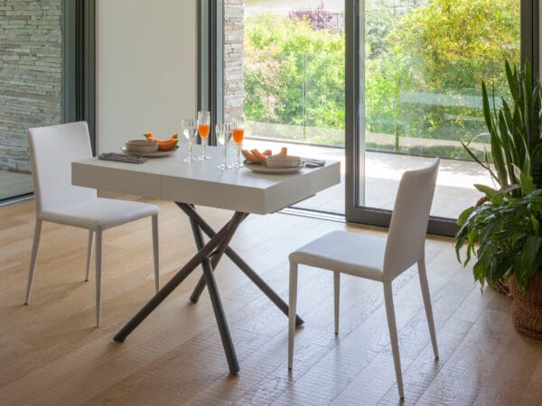Iris սեղանն առանձնանում է օգտագործման բազմաֆունկցիոնալութամբ. ճաշասեղանի տարբերակում սեղանը երկարում է երկուսից մինչև ութ նստատեղ: Փոխակերպվող սուրճի սեղան, որը վերածվում է ճաշասեղանի։ Մետաղական շրջանակ, գազային ամբարձիչ մեխանիզմ։ Բարձրությունը միլիմետրով կարգավորելի՝ 28-ից 80 սմ, ուղղանկյունաձև սեղան։ Համաժամանակյա բացման մեխանիզմներ՝ երկու ծալովի երկարացումով: Անիվներով։