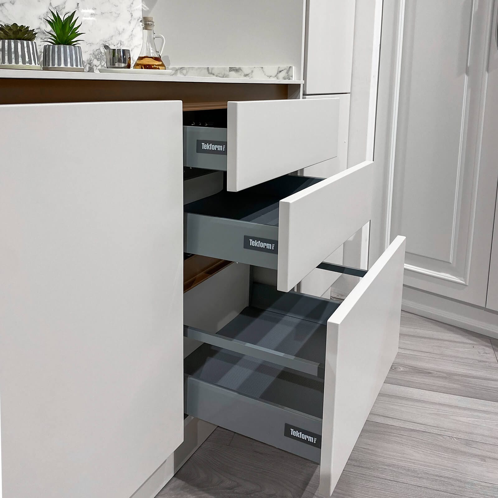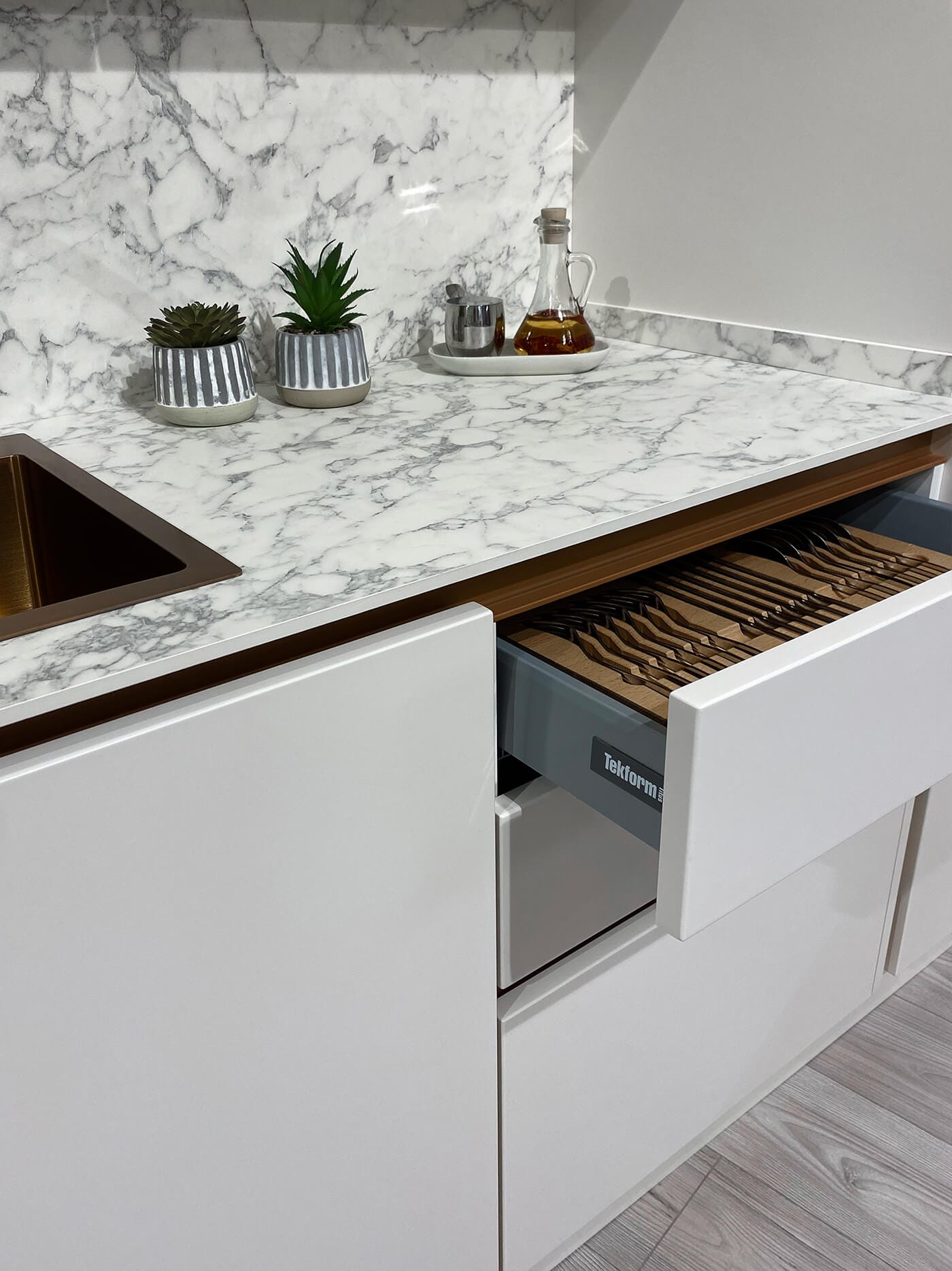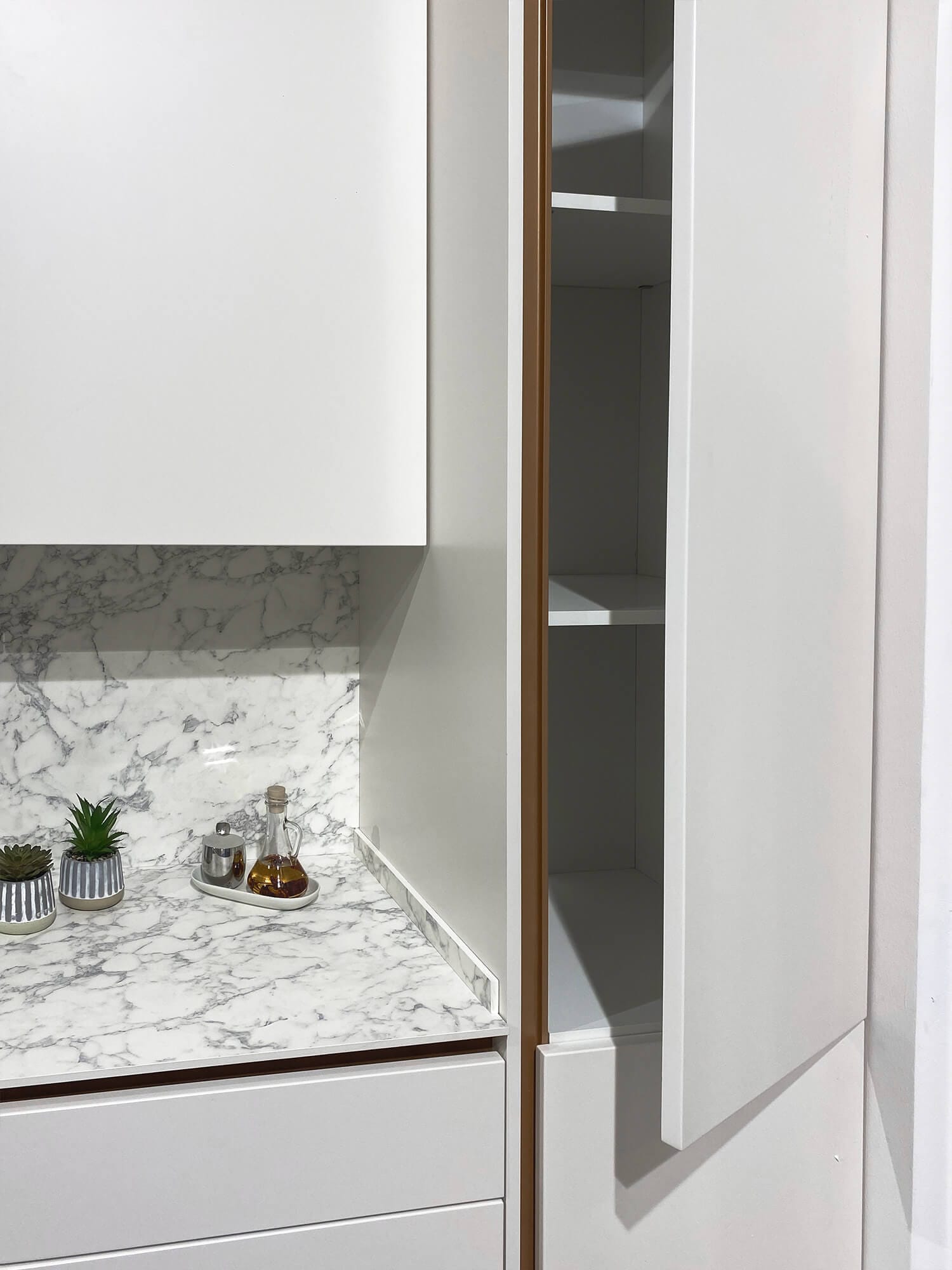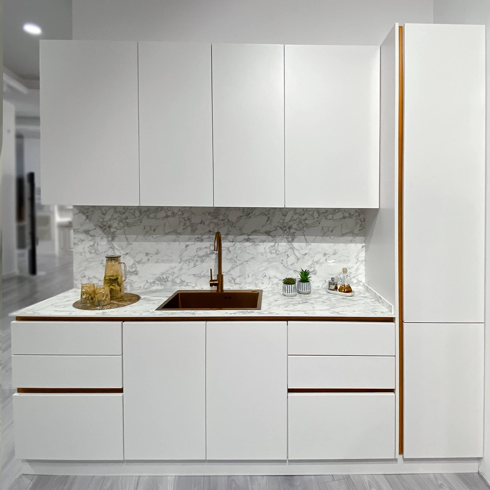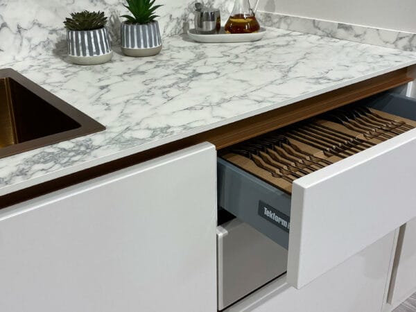 Այժմ խոհանոցում աշխատելը դառնում է է՛լ ավելի հաճելի և հարմարավետ՝ շնորհիվ թաքնված պրոֆիլների, որոնք բացի ֆունկցիոնալ լուծում լինելուց, նաև հաղորդում են խոհանոցին մինիմալիստական և հայ-թեք ոճ