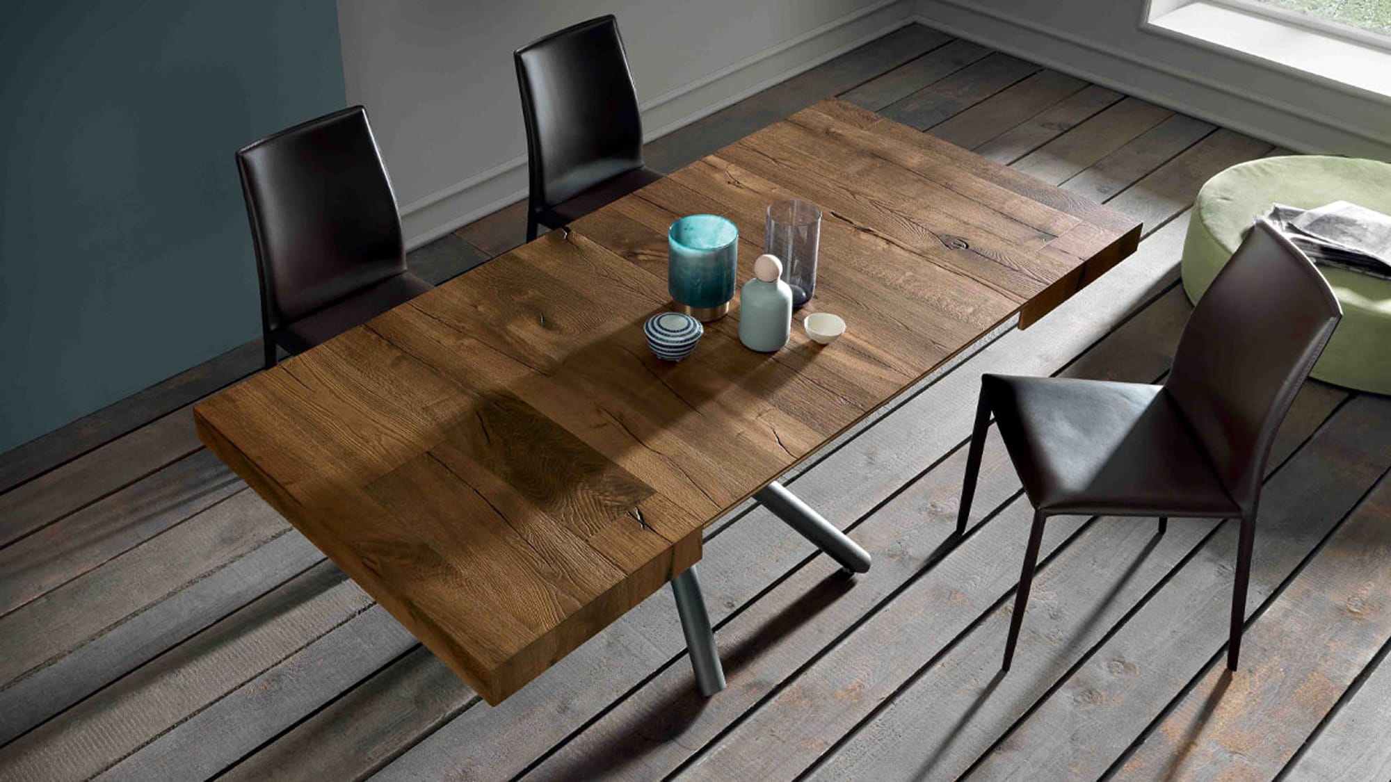 Levante-ն հին կաղնուց պատրաստված փոխակերպվող սեղան է,որն իր մեջ ներառում է մետաղական կառուցվածքի առանձնահատկությունները։ Սուրճի սեղանը վերափոխվում է ճաշասեղանի։Մետաղական կարկաս, գազլիֆտ,բարձրությունը միլիմետրերով կարգավորվող 36-ից 75 սմ․,մելամին, ներկված փայտ, քառակուսի սեղան, երկու ներքին հավելումներ, բազային անիվներ։