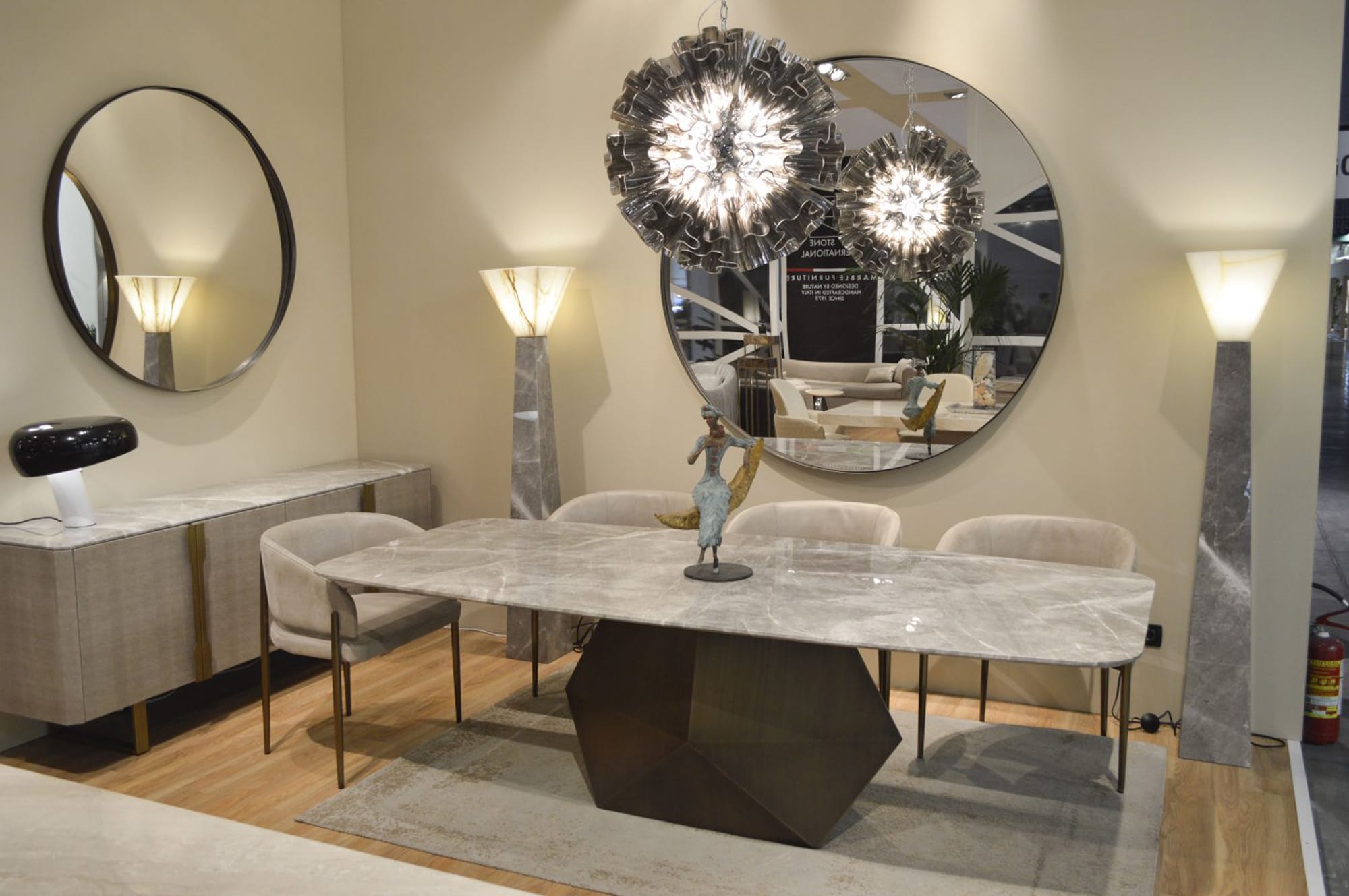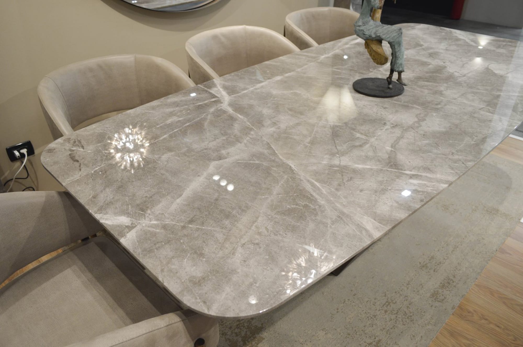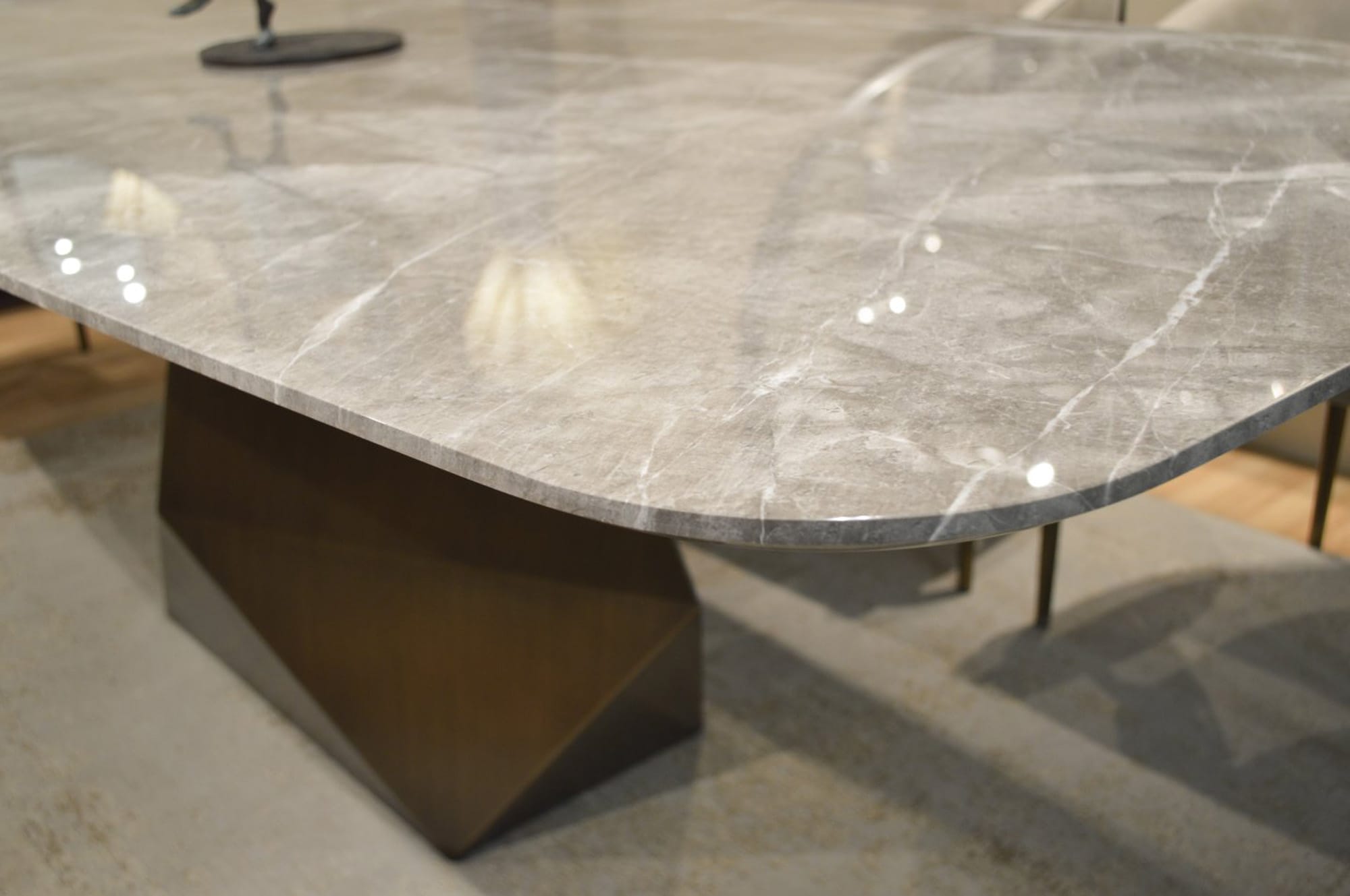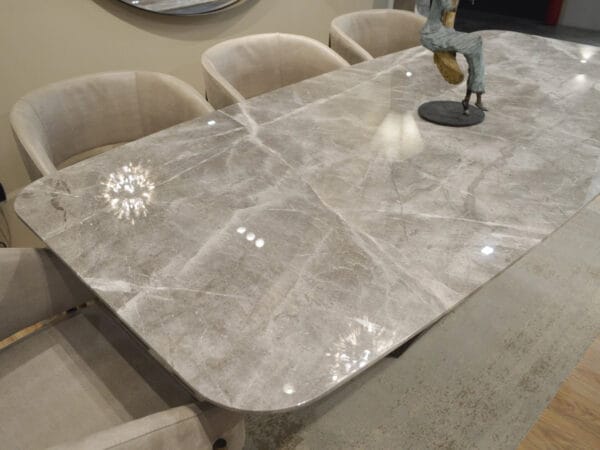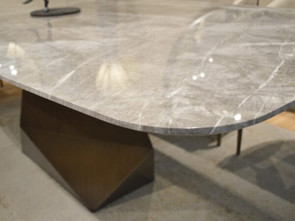 MAESTRO ճաշասեղանները ժամանակակից կահույքի դիզայնի իսկական գլուխգործոց են: Սեղանի տպավորիչ հիմքը գրավում է ուշադրությունը ցանկացած դիտակետից։ Մարմարի վերևի ճկուն եզրը ցույց է տալիս նուրբ մշակման արդյունք, որը կատարվել է ամբողջությամբ ձեռքով: