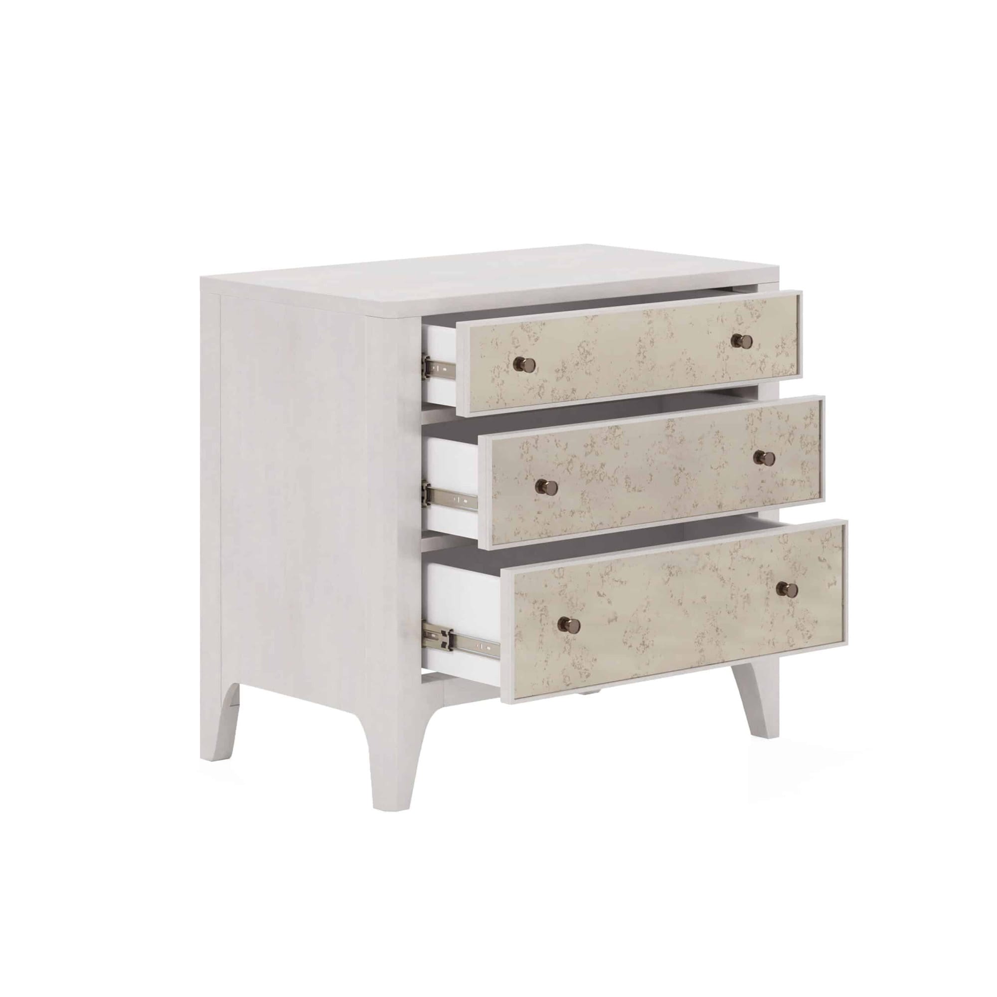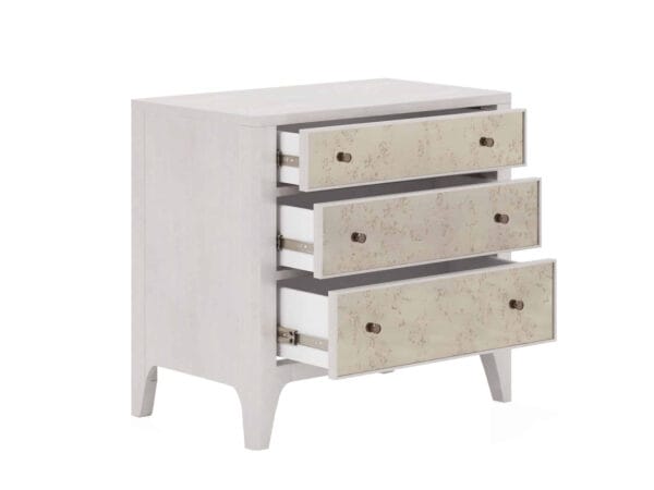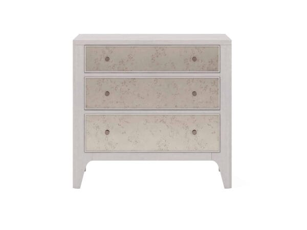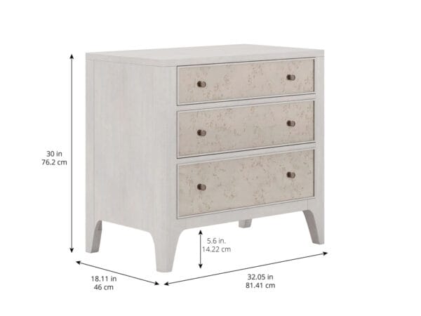 Այս տումբան Mezzanine կոմոդի փոքր տարբերակն է: Պահեք այն ամենը, ինչ ձեզ հարկավոր է կապտամոխրագույն երանգներով երեսպատված երեք դարակներում՝: Բացի այդ, գիշերային սեղանն ունի երկու USB պորտ՝ սարքերը լիցքավորելու համար։