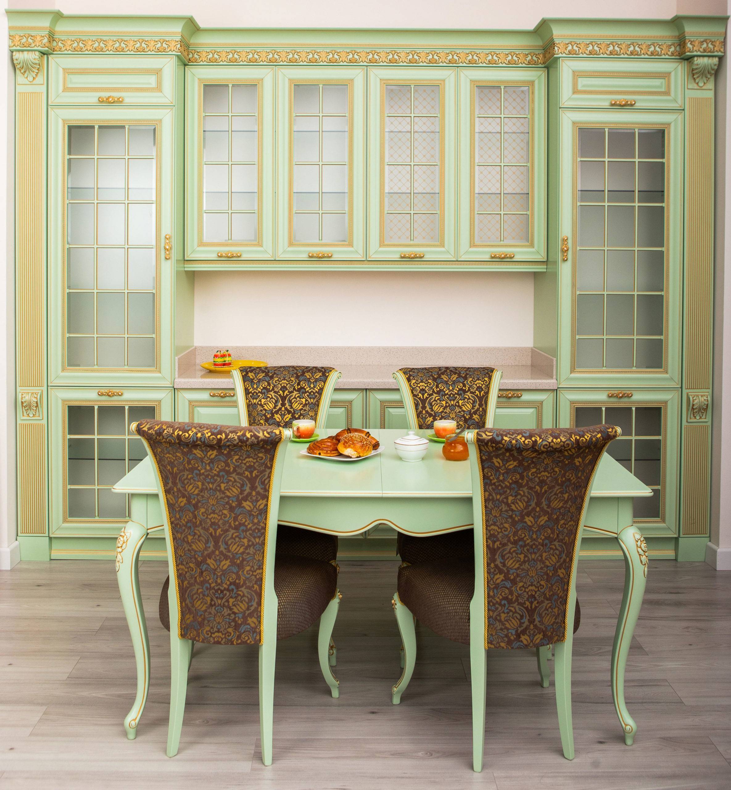 Բաց կանաչ մշտապես ակտուալ դասական ոճի խոհանոցային կահույք։