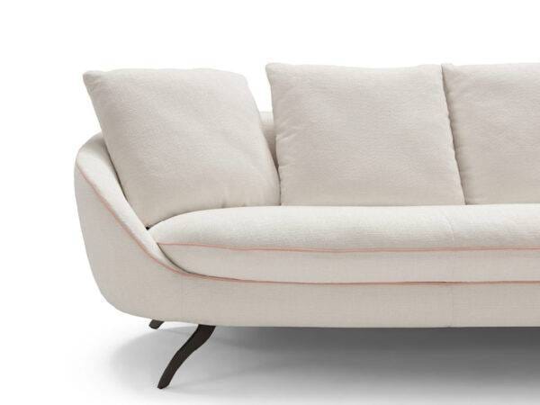 Sipario անկյունային բազմոցի էլեգանտ, հարմարավետ դիզայնը և ամուր փայտի հիմքի գրավիչ կոր ուրվագիծը յուրահատուկ դինամիկա են հաղորդում միջավայրին, ինչն էլ ընդգծում են ողջ երկայնքով ազատ տարածված՝ սագի փետուրով կարված, բարձիկների շնորհիվ: Թե՛ գործվածքից, թե՛ կաշվից (այստեղ ներկայացված է նրբագեղ ձյունաճերմակ գույնով) այս բազմոցը կարող եք պատվիրել ձեր նախընտրած կոնտրաստային եզրագծումով և ոտքերի չորս տարբեր տեսակներով: