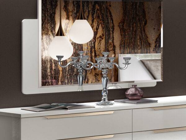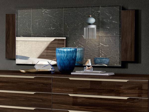 Փայլուն լաքի և գլխամասի գործվածքի կոնտրաստային համադրություն: Այս հավաքածուի բռնակներն ու ոտքերը ոսկեզօծ են: Խելացի ժամանակակից մահճակալի ներկայացման հիմնական գործոնը նրա կարողությունն է առաջարկել տարատեսակ համադրություններ՝ ննջասենյակն ըստ ձեր ճաշակի կահավորելու համար: Հասանելի են նաև հավաքածույի Queen Size և King Size մահճակալները, մաքսի կողային պահարանները, կոմոդ և զգեստապահարան: Բայց սա դեռ ամենը չէ։ Բնական տեսքն ու վառ շեշտադրումները այս հավաքածուին հատուկ ուշադրության կարժանացնեն։