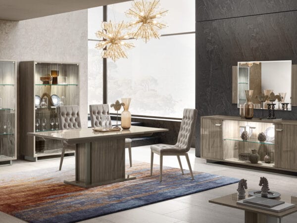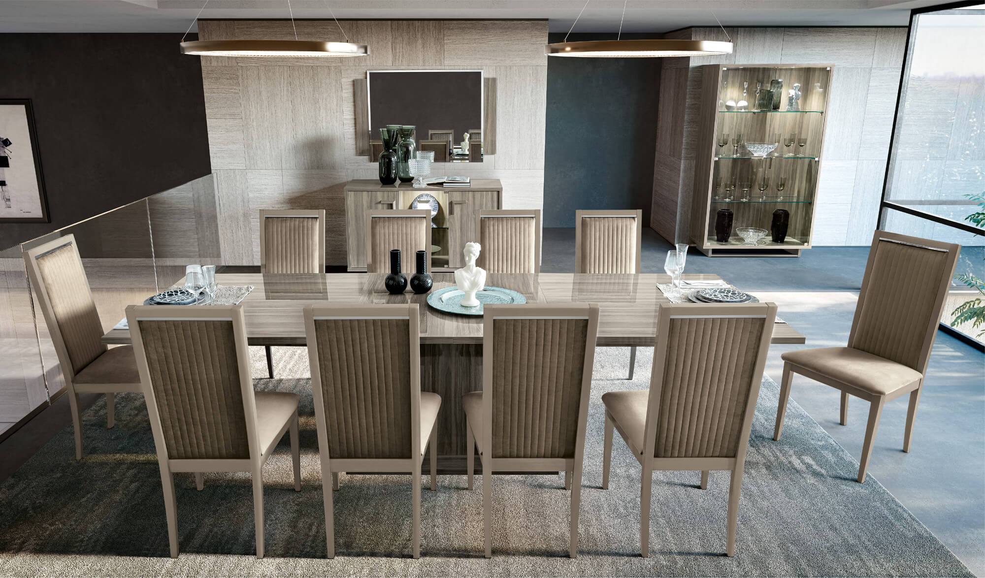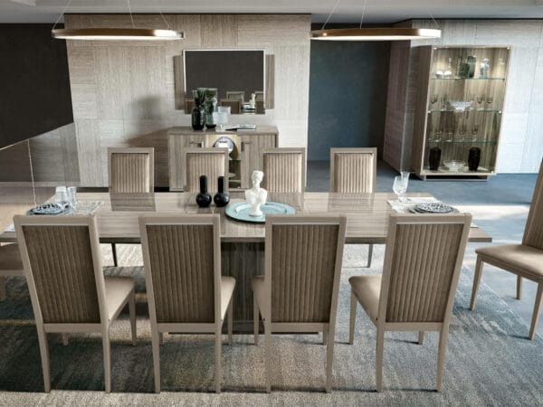 «Flute Stripe» աթոռ՝ բազմաշերտ կոր նստատեղ՝ փափուկ թավշյա (Scarlet 04) պաստառապատում՝ գծավոր կարերով։ Հիմքը պինդ հաճարենու փայտից, որը մշակվել է չորս շերտով լաքապատման ցիկլով, որպեսզի ստացվի տպավորիչ և դիմացկուն ծածկույթ: