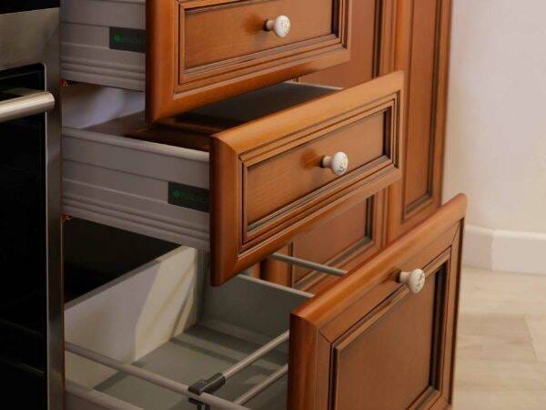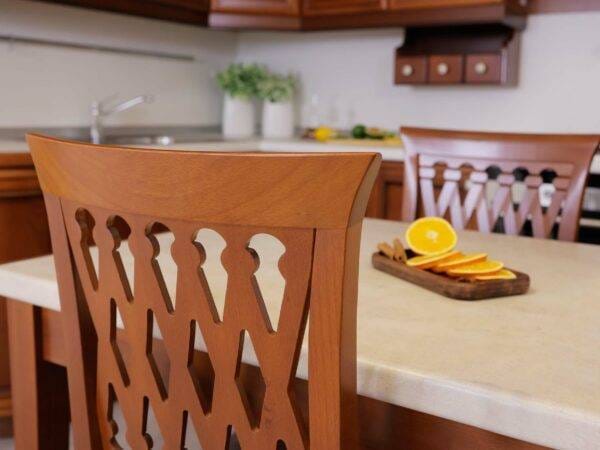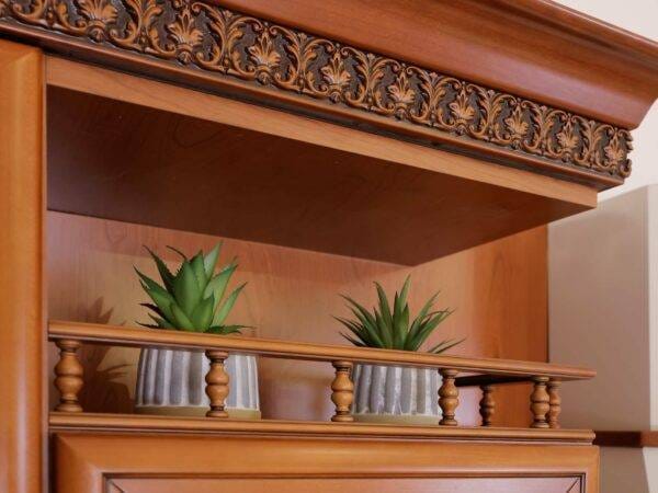 Model MILAN – little Italy in your home! Luxurious lime wood, stained-glass windows and combined facades create a unique and upscale design. Front with a frame made of solid linden, thickness 20 mm, central panel – cherry veneered.