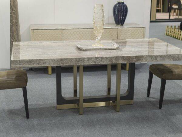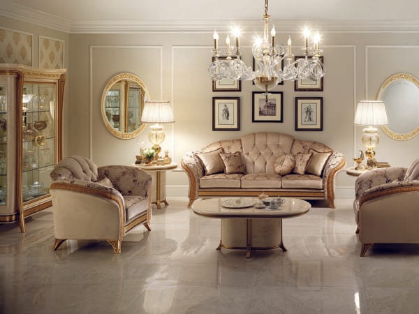 Arredoclassic uses “Made in Italy” certification to guarantee the authenticity of its product’s quality, style, image, reputation, and prestige. A traceability system using holographic markings with consecutive numbers also presents counterfeiting and guarantees the customer that the product is genuinely Italian-made. Melodia is an unreleased composition created on notes of classic Italian elegance. A new romanticism inspires the stylistic theme of the golden columns, which embrace the furnishings and emphasizes the soft and sinuous profiles. Delicate tones of white melange on the surfaces recall the purity and the prestige of polished marble․