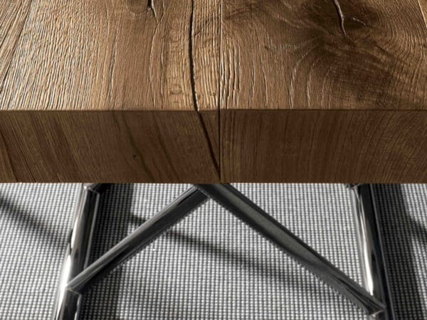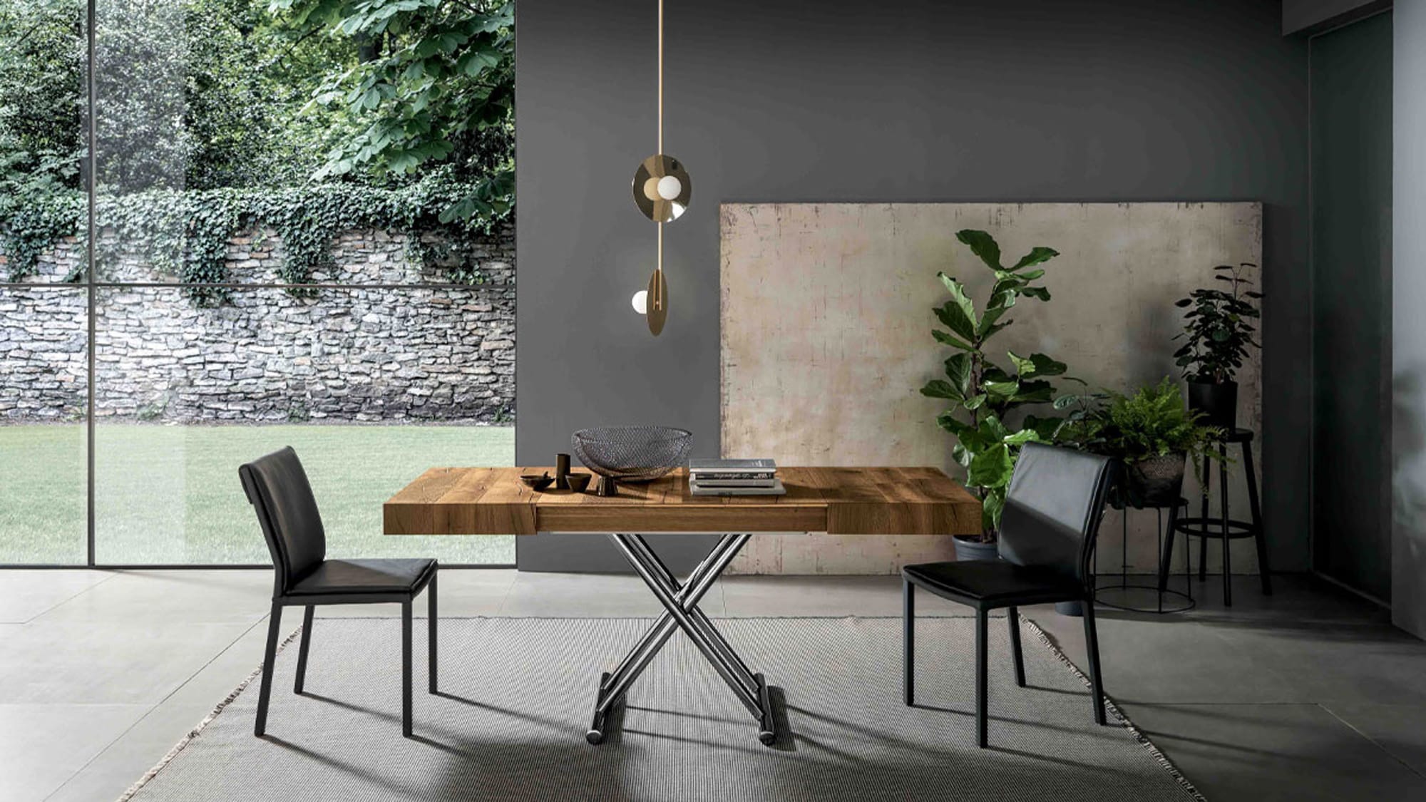 Calypso is always ready and in few moves it can host everyone. Elegance and quality find a perfect match in this transforming table. The thickness of the top guards the elements to extend the table up to the double of its length.