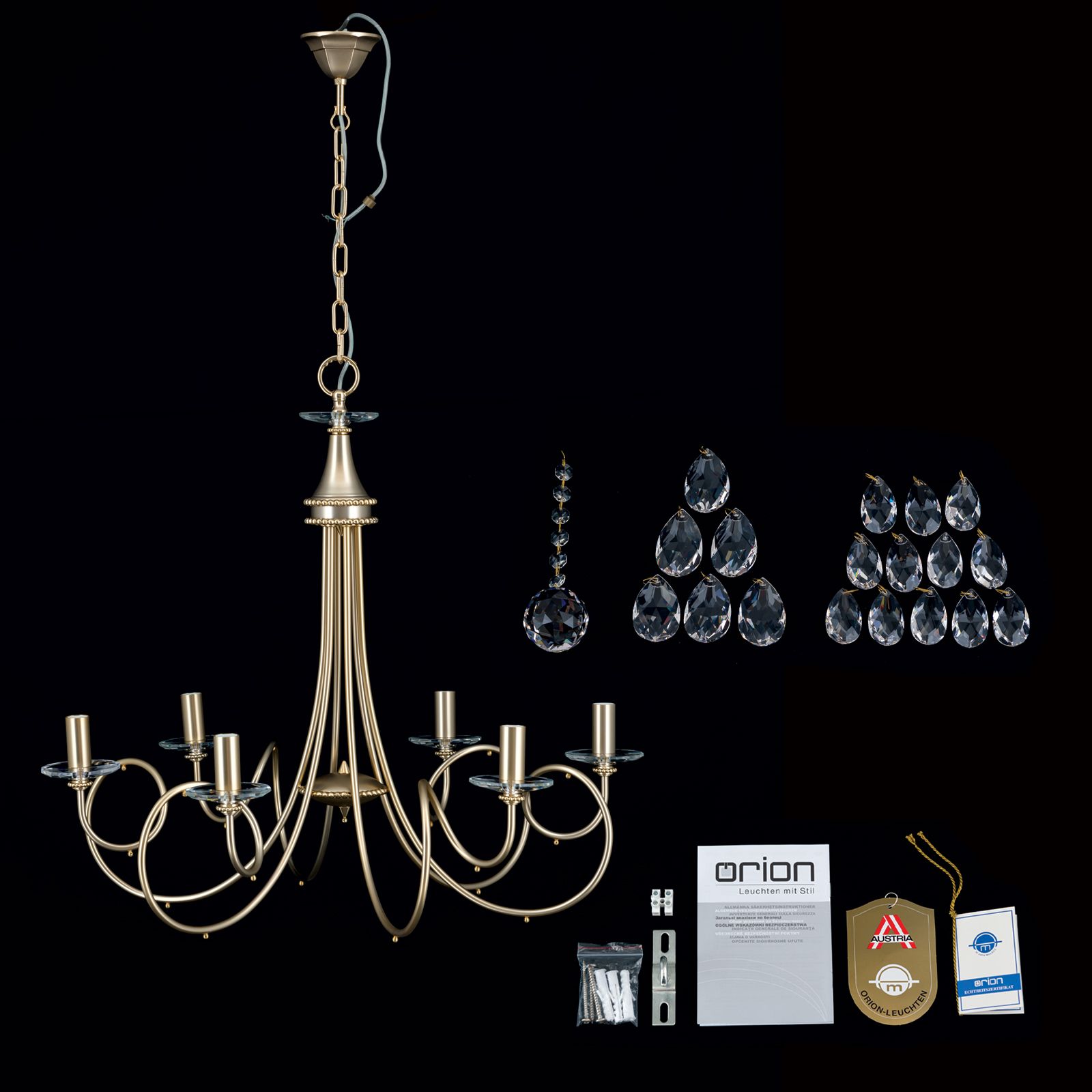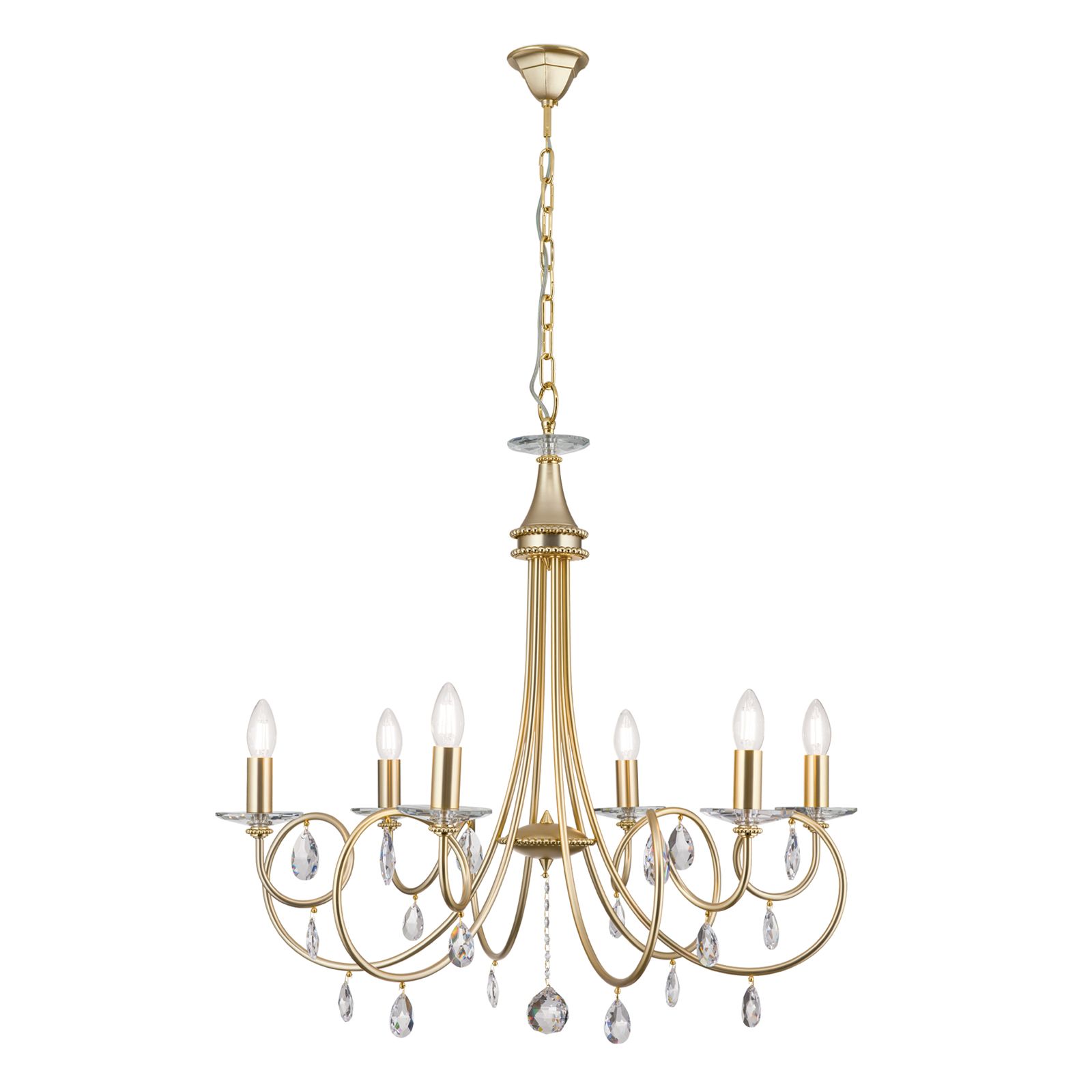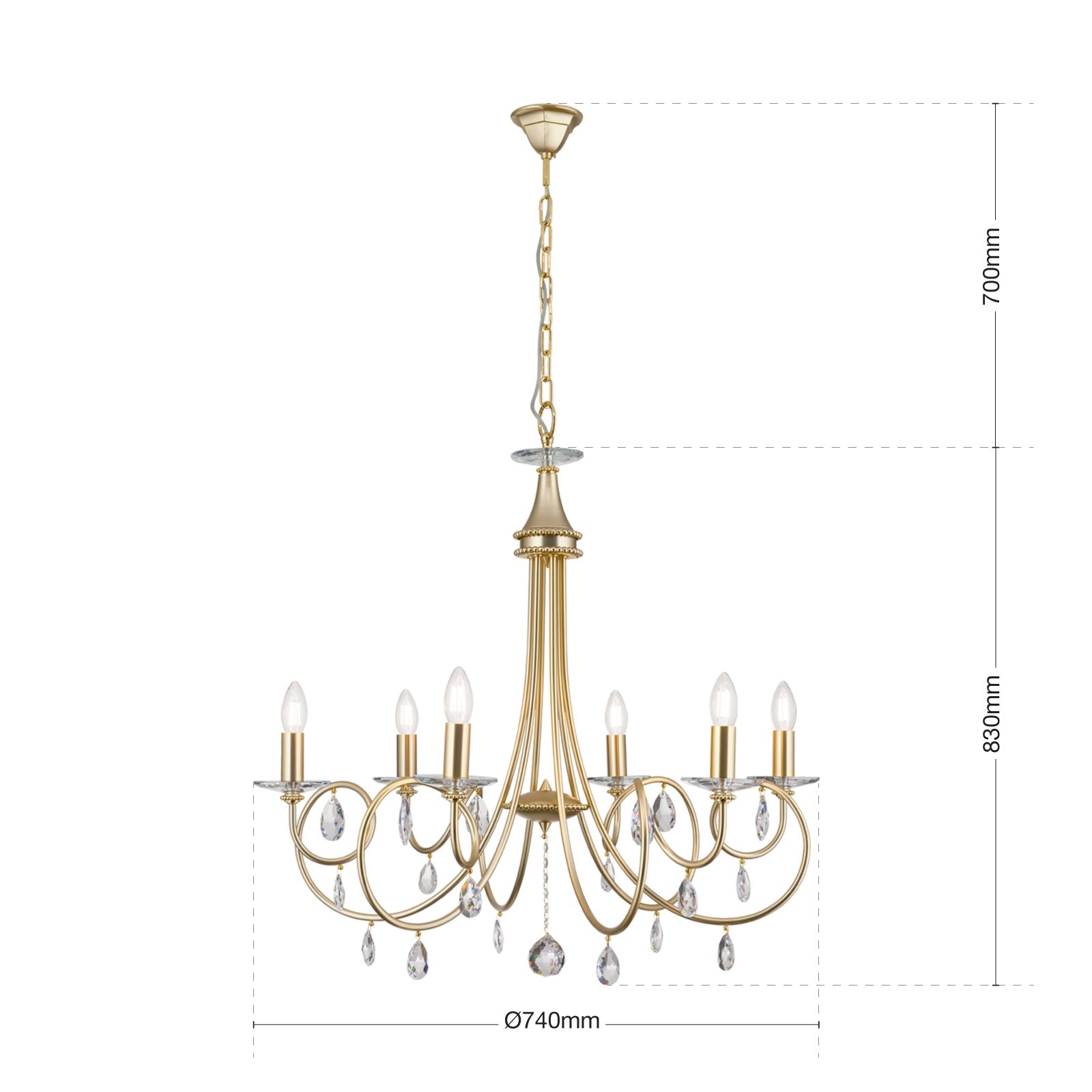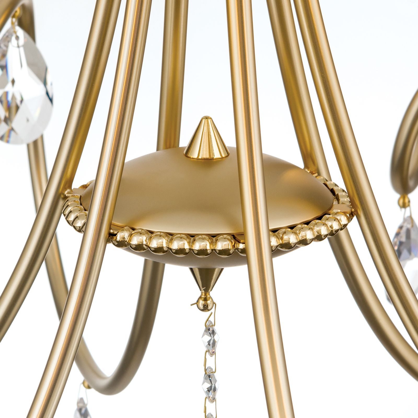 Special six-flame chandelier GIADA gives rooms a festive character. It is fitted with countless 1A full cut crystals tastefully arranged on six curved arms. The bulbs in E14 sockets combined with the chandelier’s crystals create unique lighting effects and an atmospheric ambience in any room. Wing gust candle bulbs are the perfect illuminant choice reminding of candlelight making it look noble and antique despite its modern understatement.