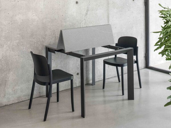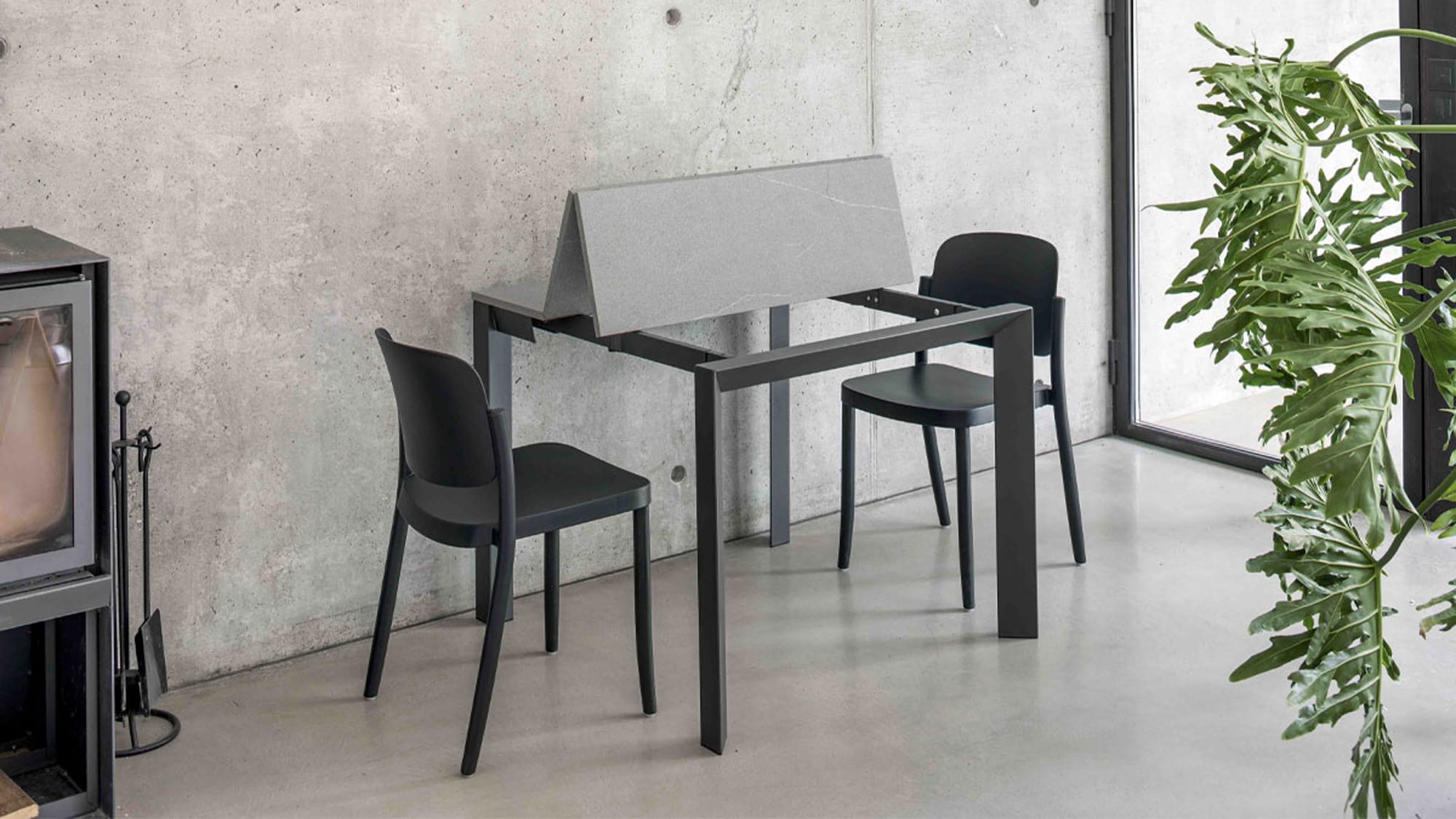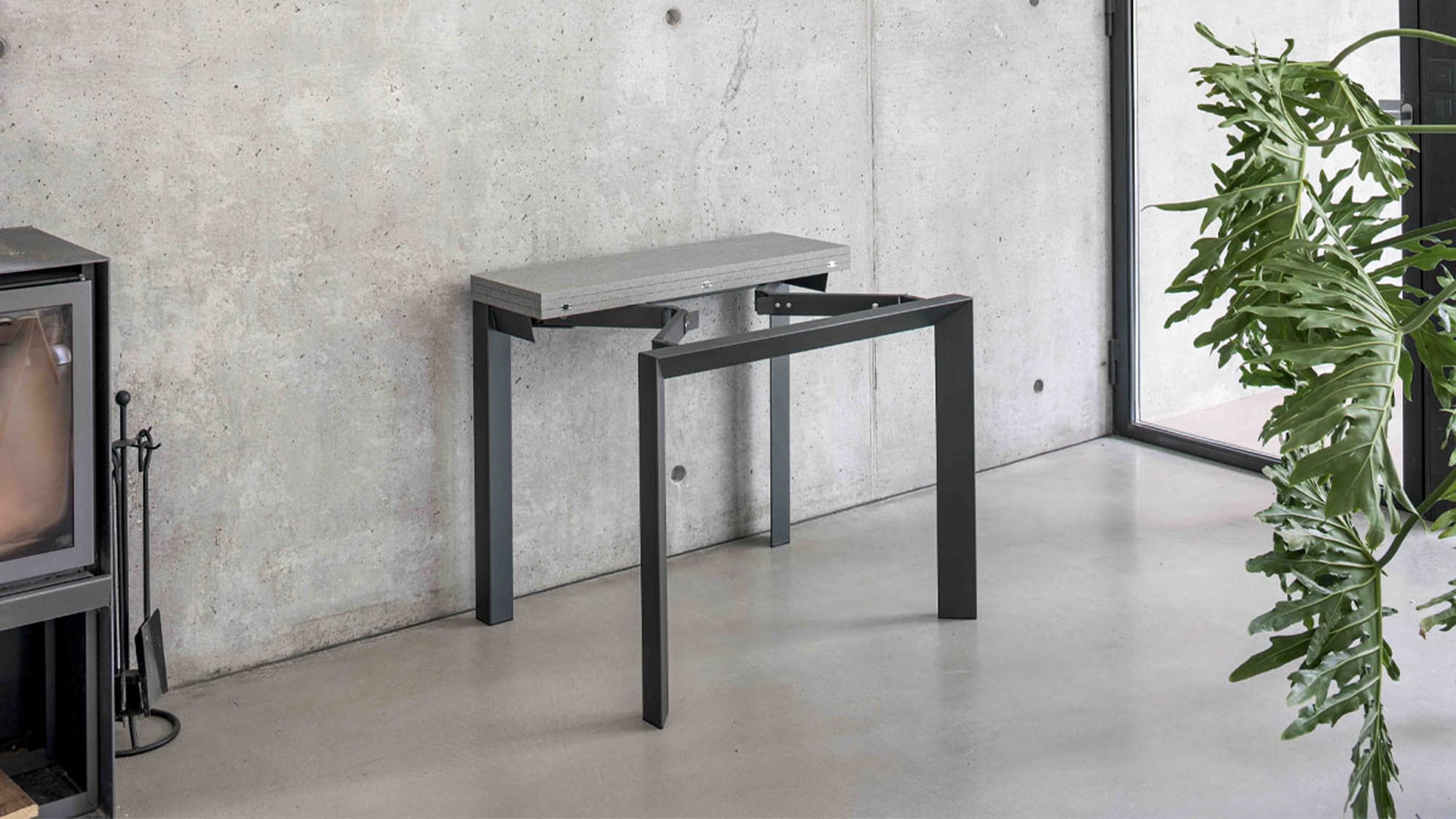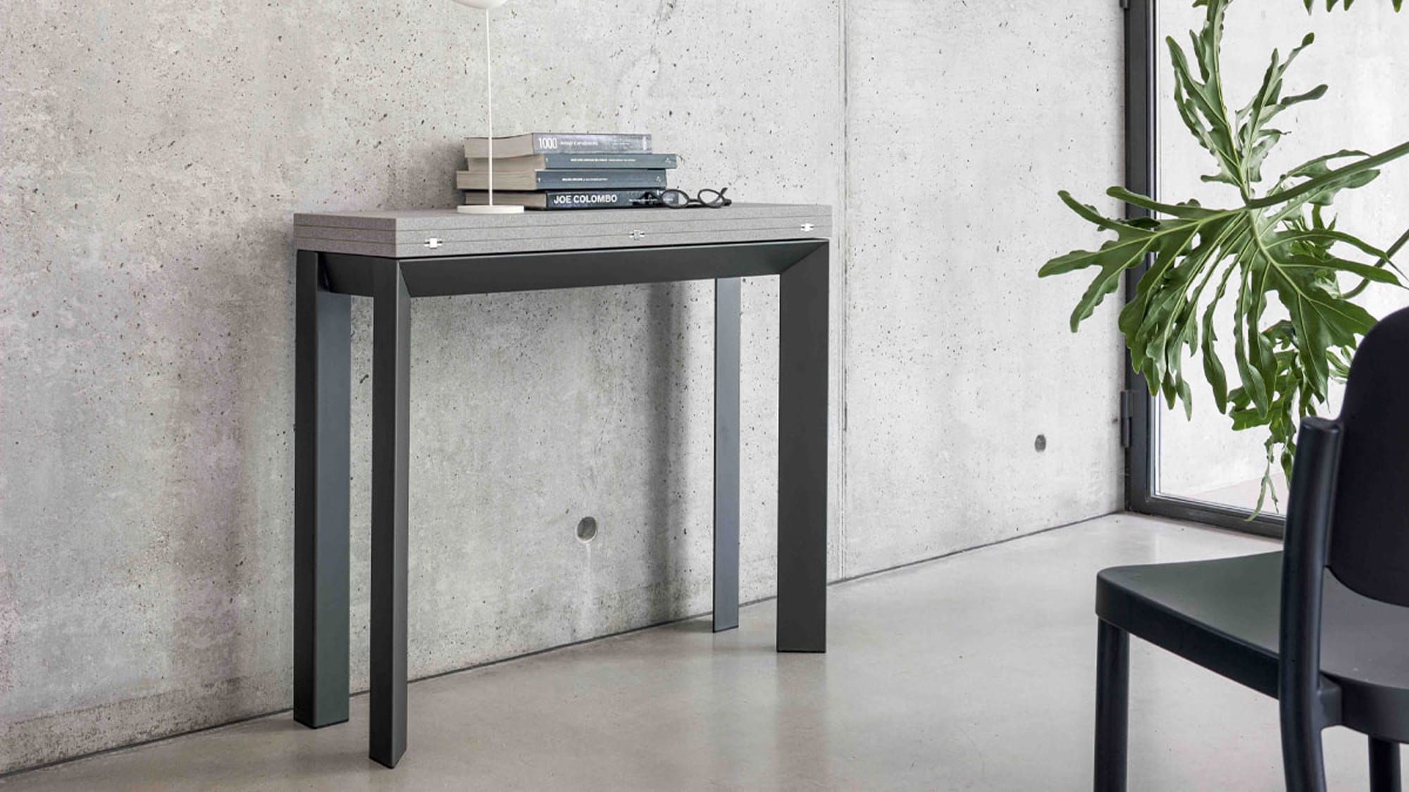 Simple and linear shapes together with a minimalist soul are the characteristics of the Domino console. Notwithstanding its minimalism, it is provided with a great functionality. A few centimeters width shapes into a 4-people dining table. Its extreme ease is astonishing.
