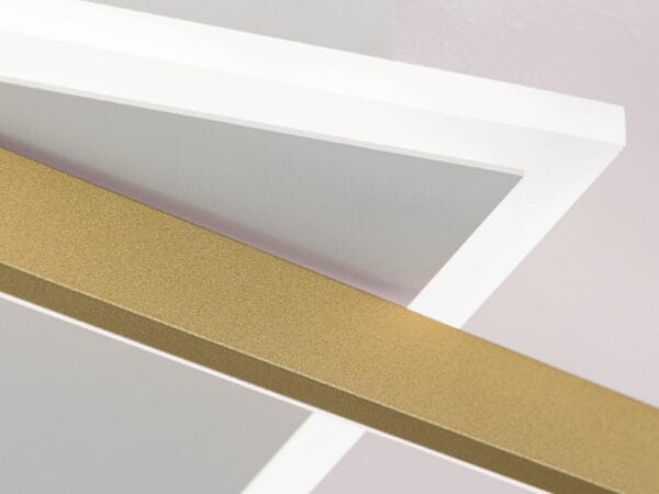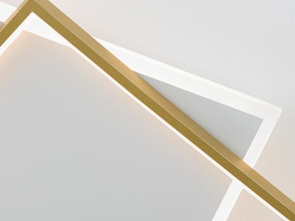 LED ceiling light EMANUEL scores with its extremely modern look and provides pleasant light. No matter for which living room, it fits perfectly into every living room, every bedroom and every anteroom. On its white square ceiling plate, an equally square frame has been mounted offset. Both parts are equipped with an illuminant and produce direct and indirect light. Its flat design makes it the ideal choice for modern new-build spaces. With its 3000 Kelvin, it emits warm white light, which is also glare-free thanks to the opal matt cover and can be dimmed. EMANUEL is available in white/black and white/gold.
