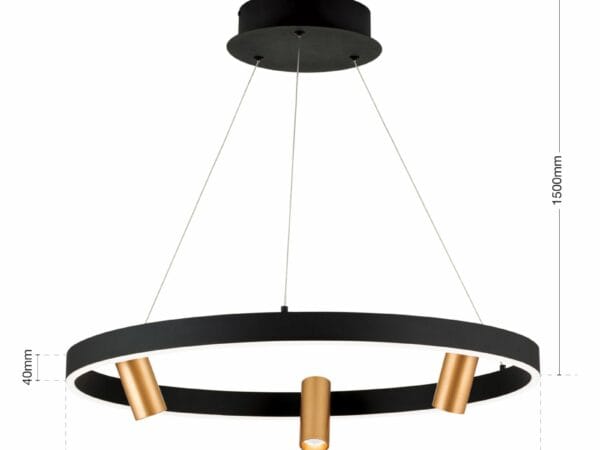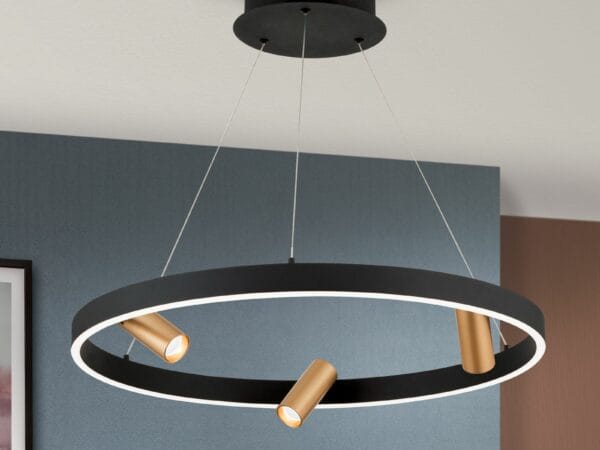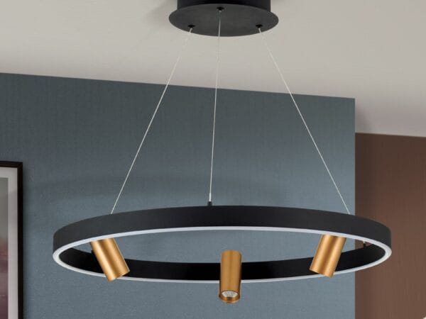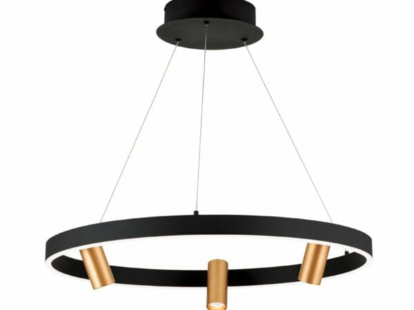 Black and gold – a match made in heaven. Modern LED pendant lamp BERLIN features not only a captivating color combination but also a sophisticated luminaire design. It fits perfectly above dining tables illuminating them evenly and glare-free thanks to its diffuser ring fitted with LED boards.