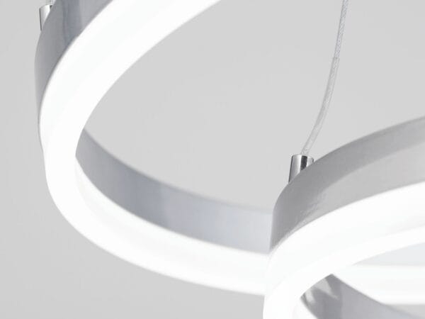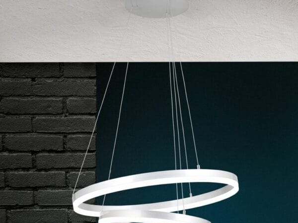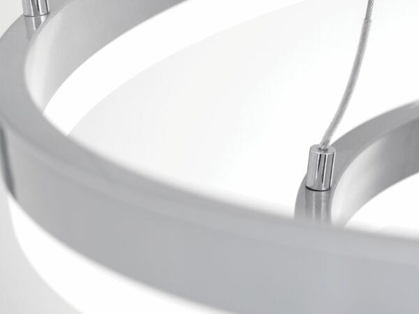 Weightlessness – the name and visuals of pendant lamp FLOAT correspond ideally. Two robust metal rings equipped with linear LED boards form the lamp’s core. Attached to fine but robust steel stays that remain discreetly in the background thus supporting the floating design. Angle and distance between the two rings can be freely chosen during assembly adding a personal touch.
