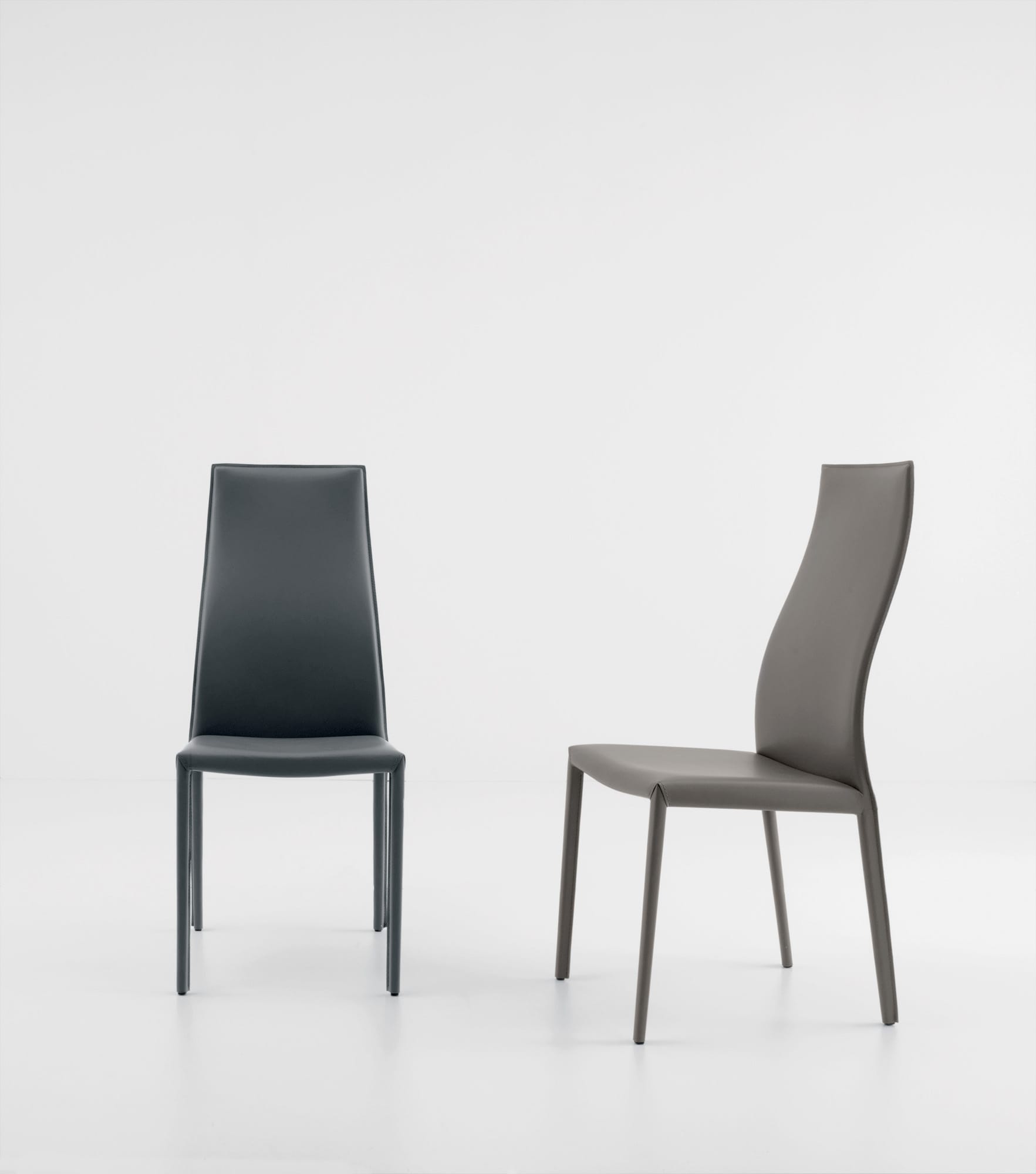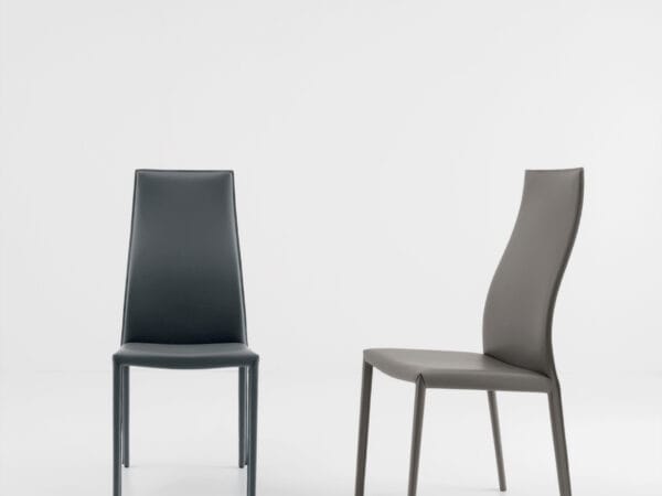 Introducing the Marilyn tall upholstered dining chair by Compar, a sophisticated addition to elevate the ambience of your dining or living room space. This chair features a high backrest that not only provides exceptional comfort but also adds a touch of elegance to your interior decor. The meticulous design is accentuated by matching stitching on the upholstery, creating a seamless and refined look.