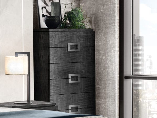 The combination of regular shapes, high quality finishes and eye-catching details lends a bold character to the chest of drawer and to the entire night collection.