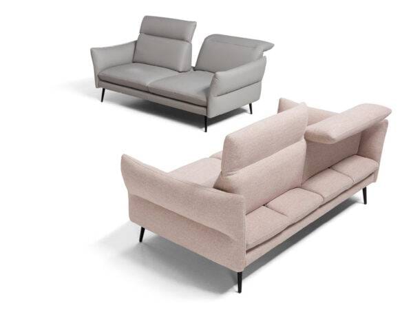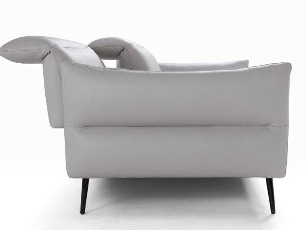 All seats are equipped with a reclining headrest and a sliding mechanism that can increase the depth of the seat as needed. Available with either leather or fabric covering and with five different finishes for the feet.