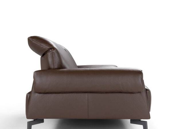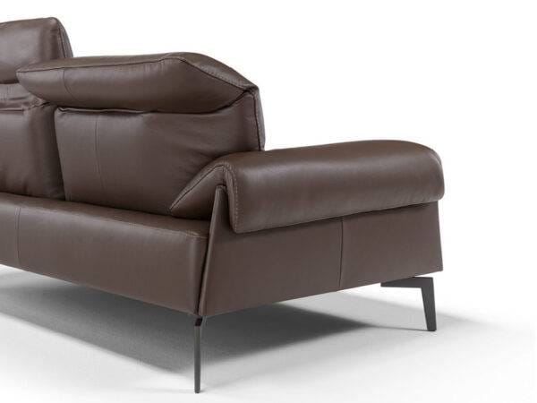 The side is characterized by a sloping panel that leaves the seat cushion free to view, partially revealing the back, so the sofa can be easily placed in the middle of the room. The very soft cape armrest recalls the design and comfort of the headrests – reclining in multiple positions.