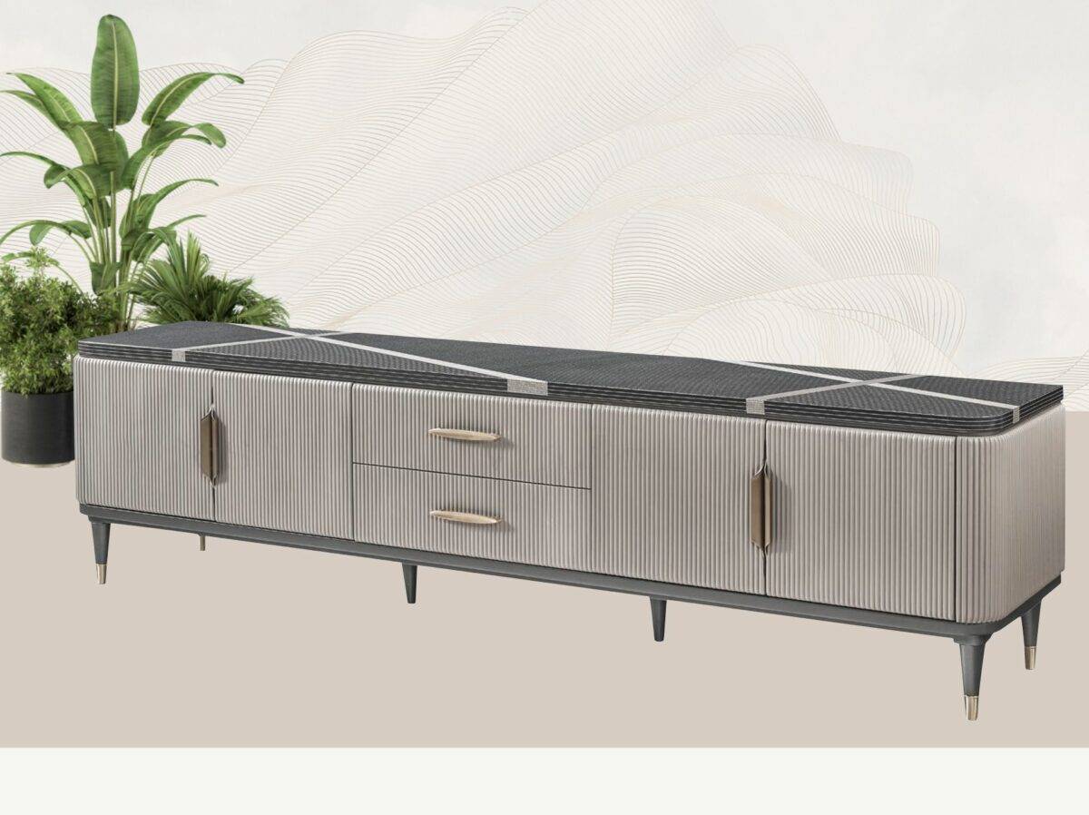 The simplicity of this modern TV unit makes it ideal for furnishing any type of space. It is the perfect complement to the TV and emphasizes its main advantages.