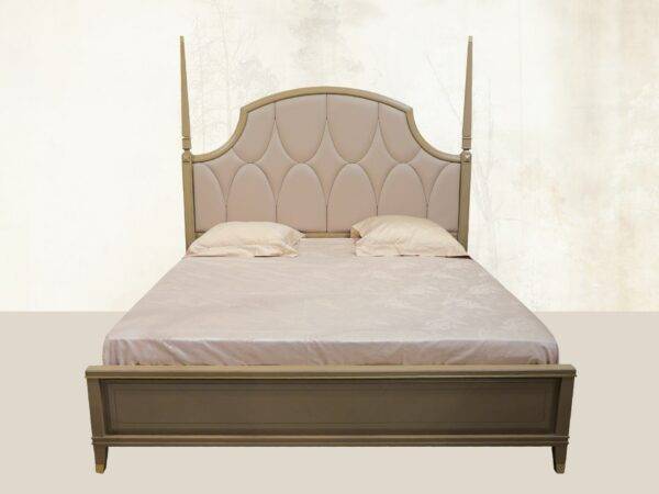 Модель Alice Blue отличается воздушной цветовой гаммой, которая прекрасно сочетается с ее практичной комфортабельностью, а кожаная отделка кровати интересно смотрится с деревянным изделием каркаса.
