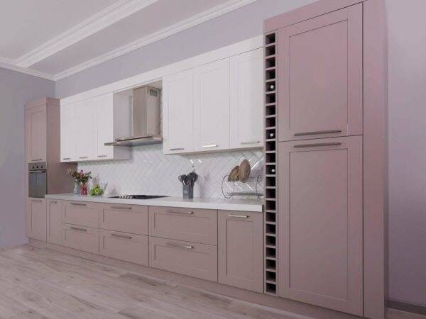 Источник вдохновения для домашнего уюта: прямая и лаконичная кухня PLATINUM с матовыми фасадами в стиле лофт! Эта функциональная кухня отличается своими встроенными рациональными полками для качественного размещения винных бутылок. Такое уместное расположение не только достаточно эстетично и красиво, но и обеспечивает быстрый доступ к вожделенному напитку.
