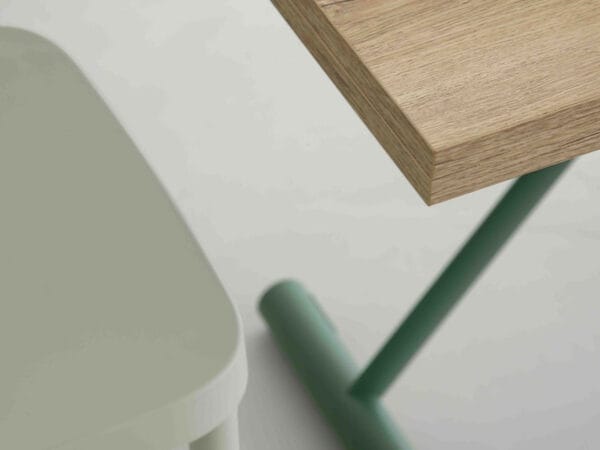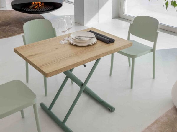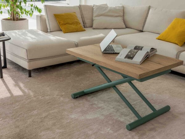 У Amelie простой и практичный стиль. Он больше подойдет людям, которые не любят лишних деталей, но в то же время любят многофункциональные столы, использующие все возможности стола. Металлический каркас трансформируется в обеденный стол, газлифт, высота регулируется от 25см до 76см, двойная столешница из меламина, стекла, гипса, керамики. Базовые колеса.