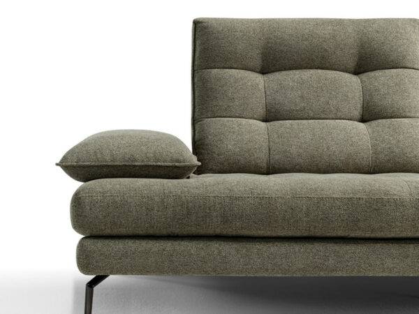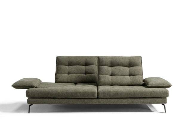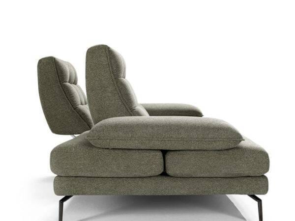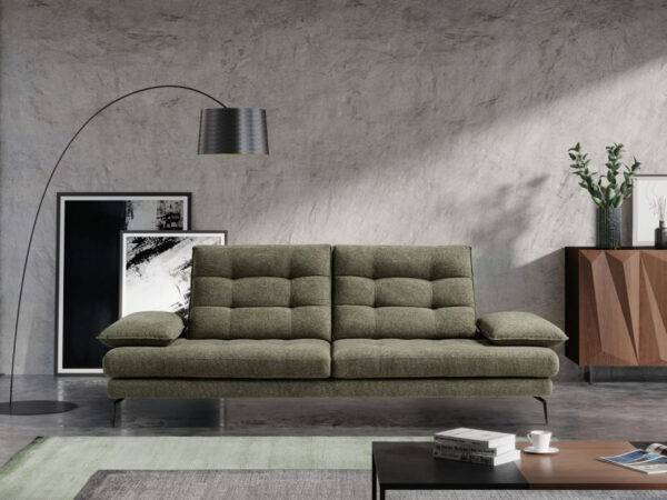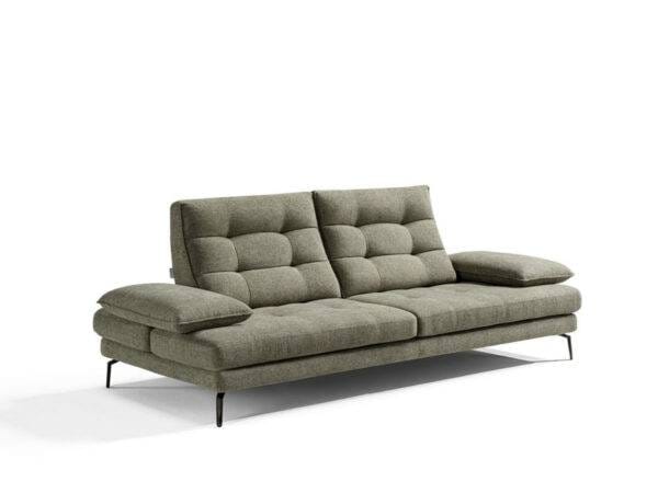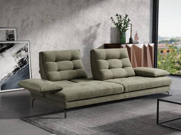 Трехместный диван «макси», характеризующийся эргономичным дизайном и уникальными линиями, с 4 механизмами перемещения на спинке и подлокотниках, которые создают различные конфигурации, постоянно изменяя его дизайн. Одной из его особенностей, безусловно, является прямоугольная стеганая конструкция как на спинке, так и на сиденье, которая украшает образ.