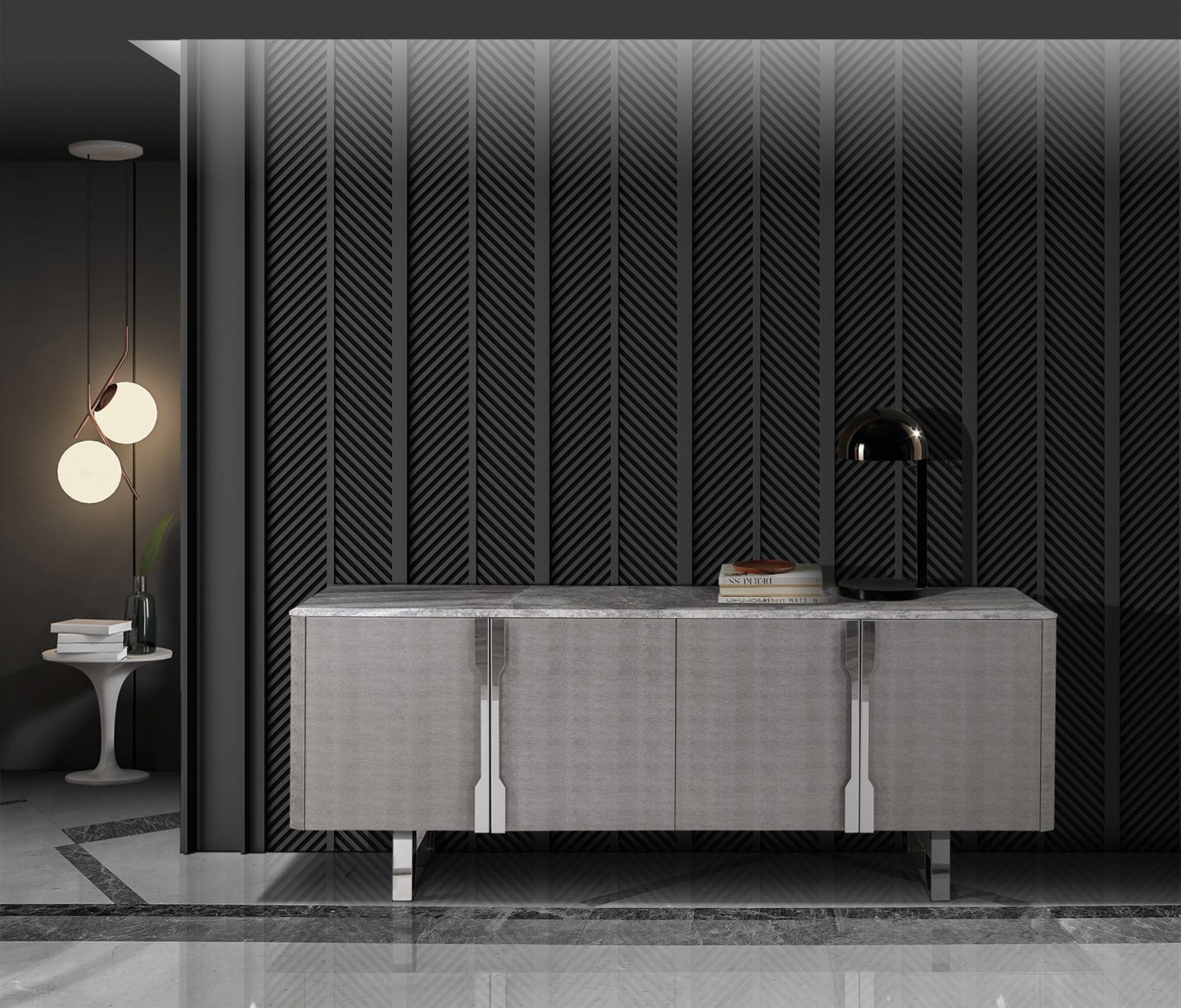 Комод Diamond впечатляет своим современным характером. Верхняя часть, боковины и роскошные металлические ручки выполнены в стиле бриллиантовых украшений.
