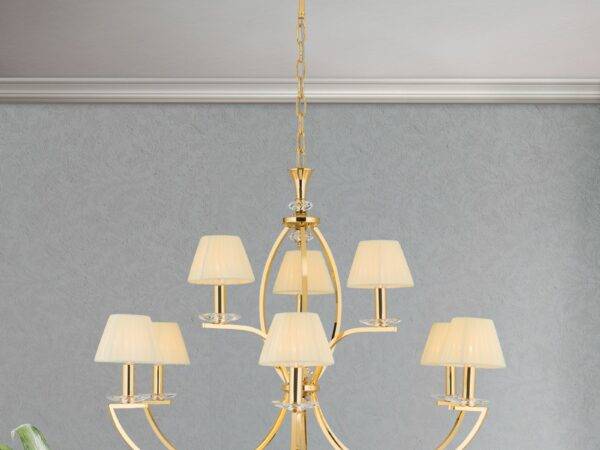 Прозрачные светодиодные лампочки, покрытые по бокам текстильными абажурами, распространяющими свое удивительное разнообразие цветов вверх и вниз через кристаллы, идеально подходят в качестве источников света для девяти цоколей E14. В версии с регулируемой яркостью AVALA также можно использовать для атмосферного освещения, создающего волшебную атмосферу в жилых комнатах, а также в больших залах. Кроме того, люстра имеет класс защиты IP20 и класс защиты I, последние стандарты.
