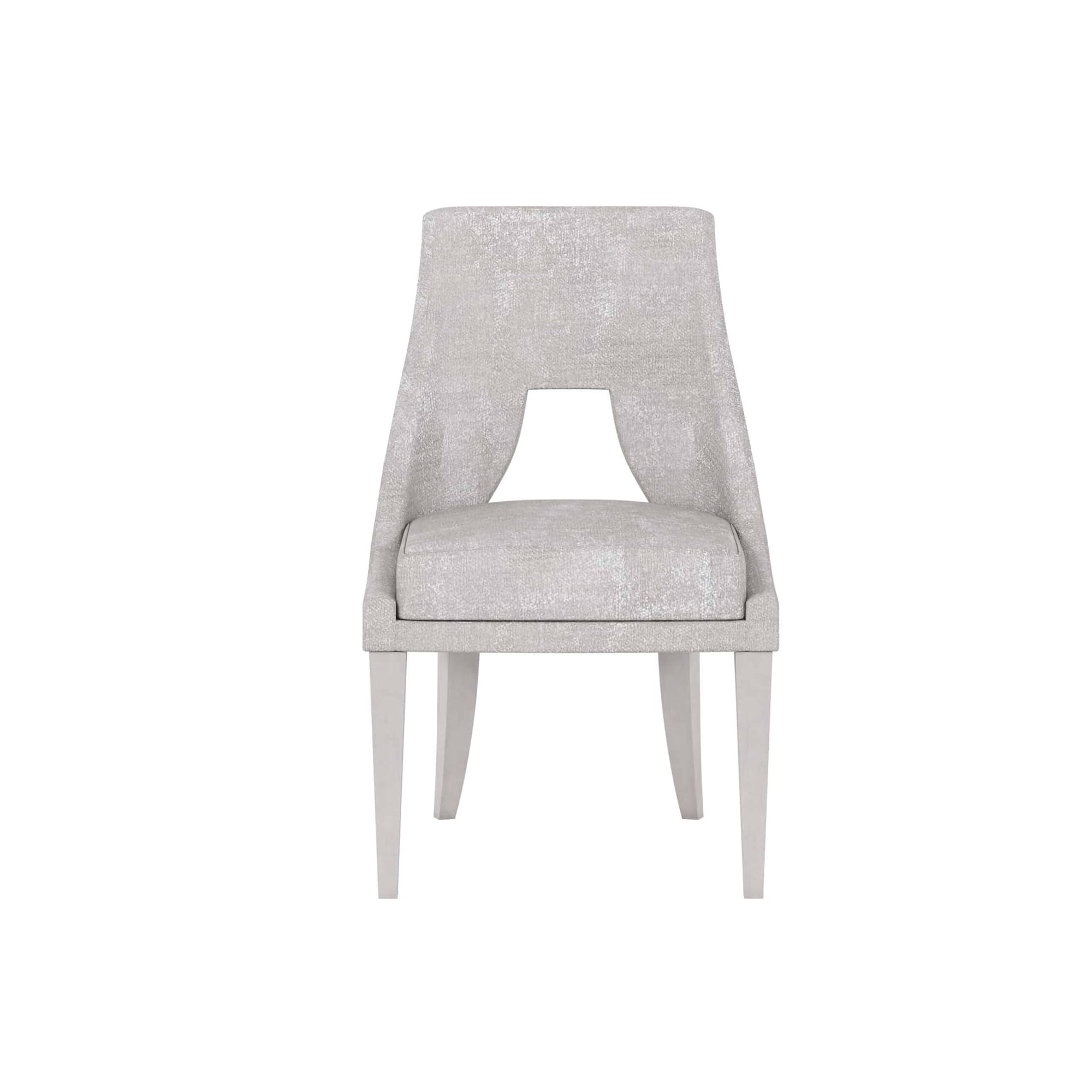 Грациозные изгибы нарядно облечены в тщательно выполненный серебристый велюр. Это современное обеденное кресло пробуждает ощущение кутюрного наряда, с его изящно округленными боковинами и модным вырезом на спинке.