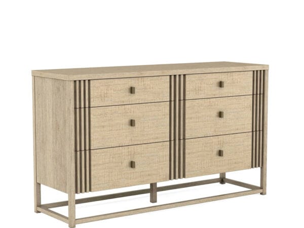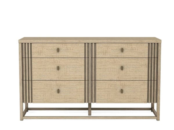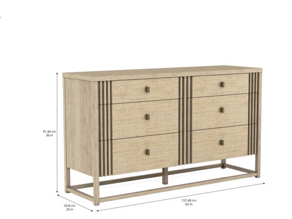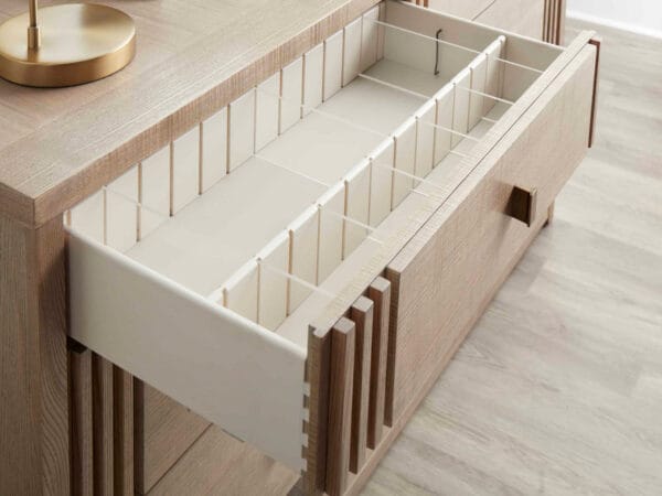 Современный повседневный стиль сочетается с тщательно продуманным дизайном в коллекции North Side, вдохновленной культовыми городами мира. Архитектурная форма этой комодной тумбы создана из массива паравуда и шпона ясеня, красиво дополнена фурнитурой из льняной бронзы. Всего шесть ящиков обеспечивают достаточно места для хранения вещей: универсальные органайзеры в двух верхних и ароматная кедровая облицовка в двух нижних.