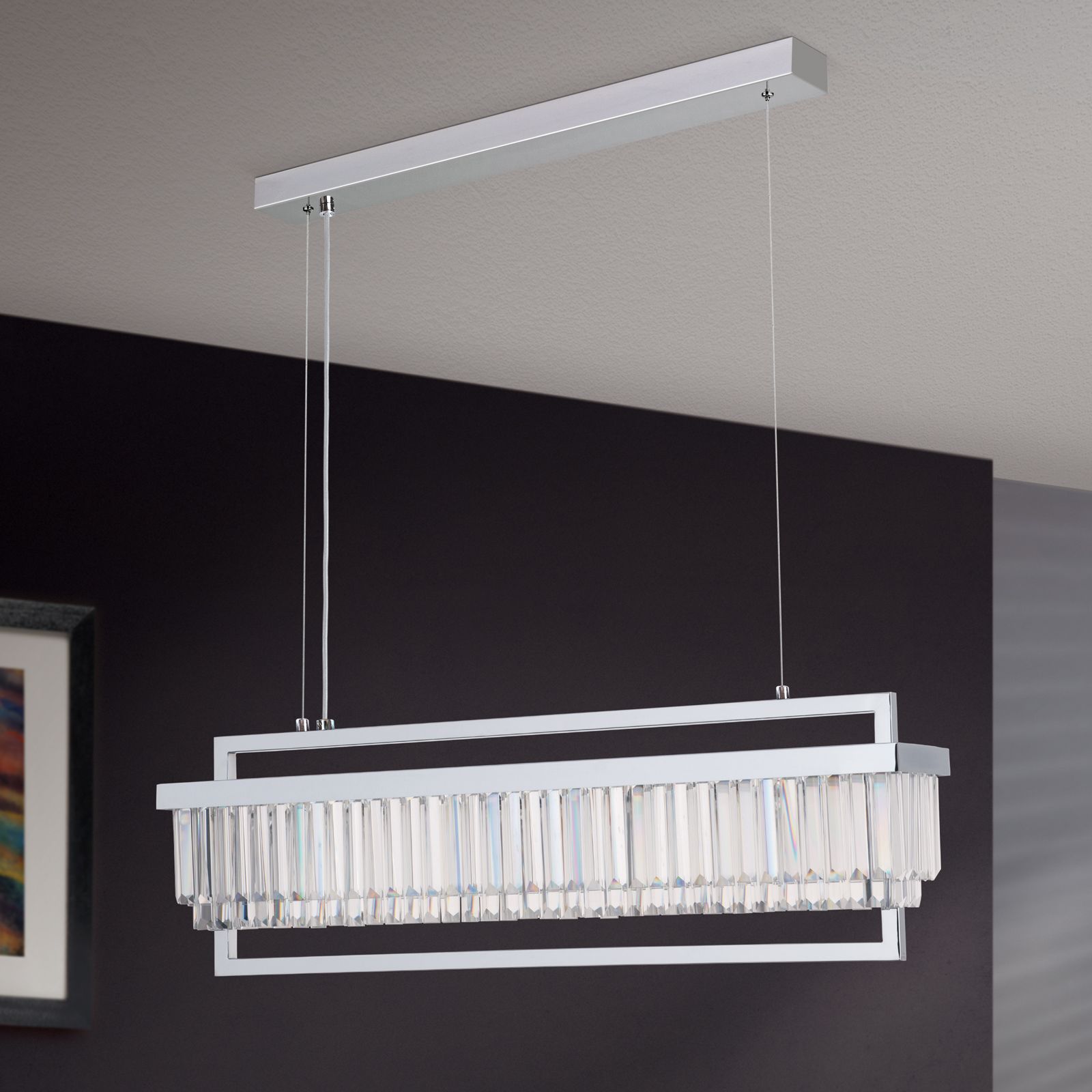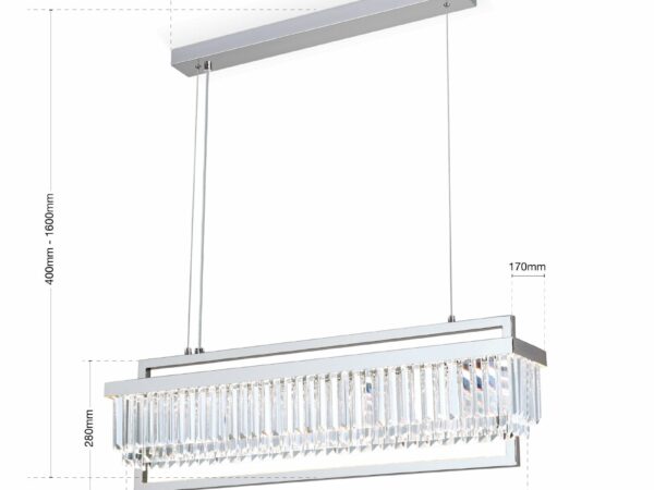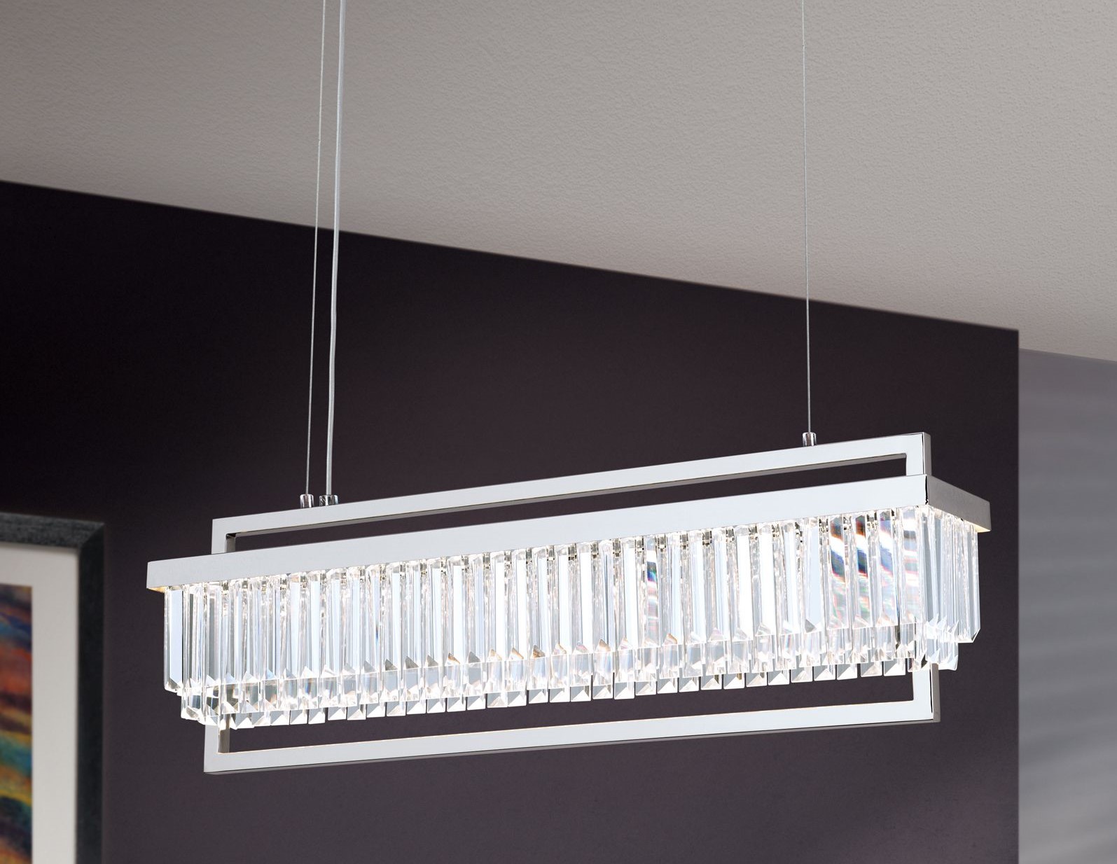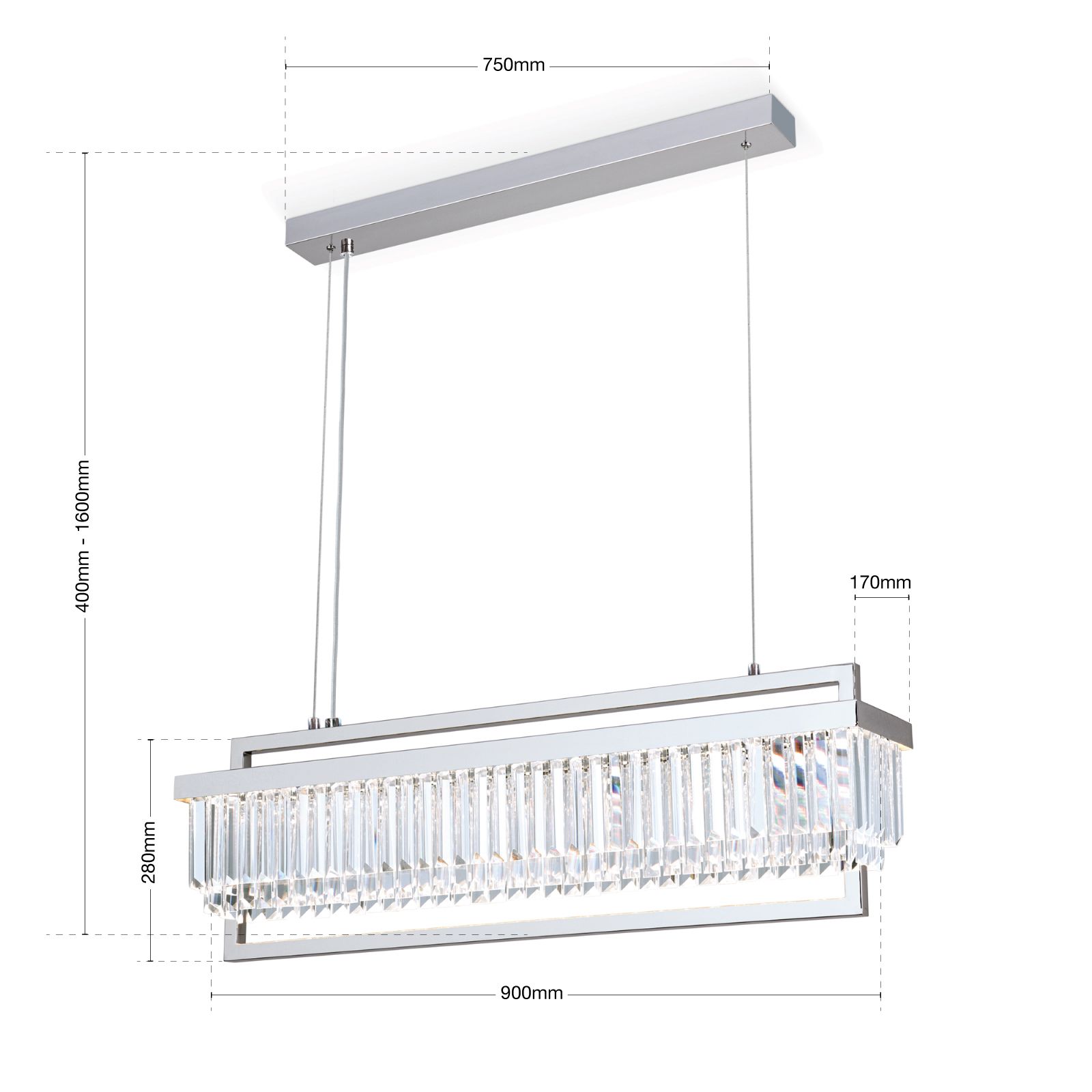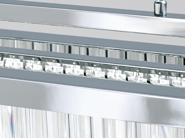 Удлинённый кристальный светильник идеально подходит для обеденных зон и становится благородным центральным элементом комнаты. Умело расположенные кристаллические призмы, LED-лампы и диффузоры обеспечивают равномерное освещение даже больших столов, не создавая бликов. Его функция регулировки яркости позволяет создать нужную атмосферу освещения.