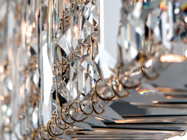 Прежде чем свет распространится по комнате, он должен пройти через многочисленные кристаллы, создавая красивые световые отражения и благородную атмосферу. Блестящая отделка корпуса лампы поддерживает эффект сияния, который проявляется не только при включении лампы. Лампа оснащена пятью патронами E14, максимальная мощность которых составляет 40 ватт. При желании, лампу можно затемнить и настроить под индивидуальные предпочтения.
