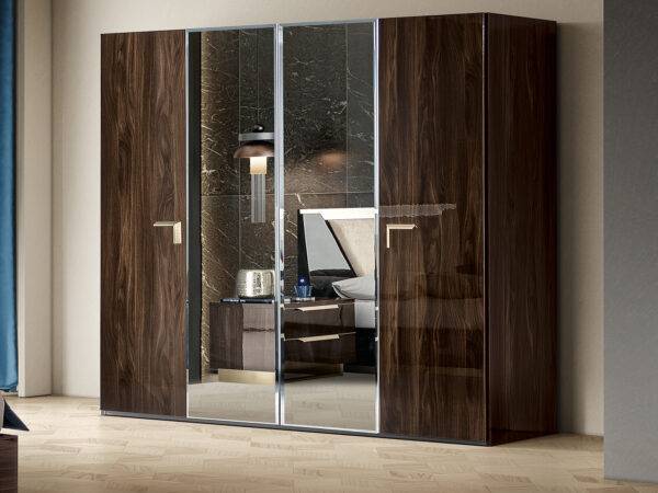 Привлекательные блестящие поверхности, а также контраст между структурой белого глянцевого лака и бежевой тканью изголовья. Ручки и ножки этого набора отделаны золотой матовой отделкой. Основным фактором презентации умной современной кровати является ее способность предложить разнообразное количество дополнительных аксессуаров, чтобы настроить вашу спальню в соответствии с вашим вкусом.