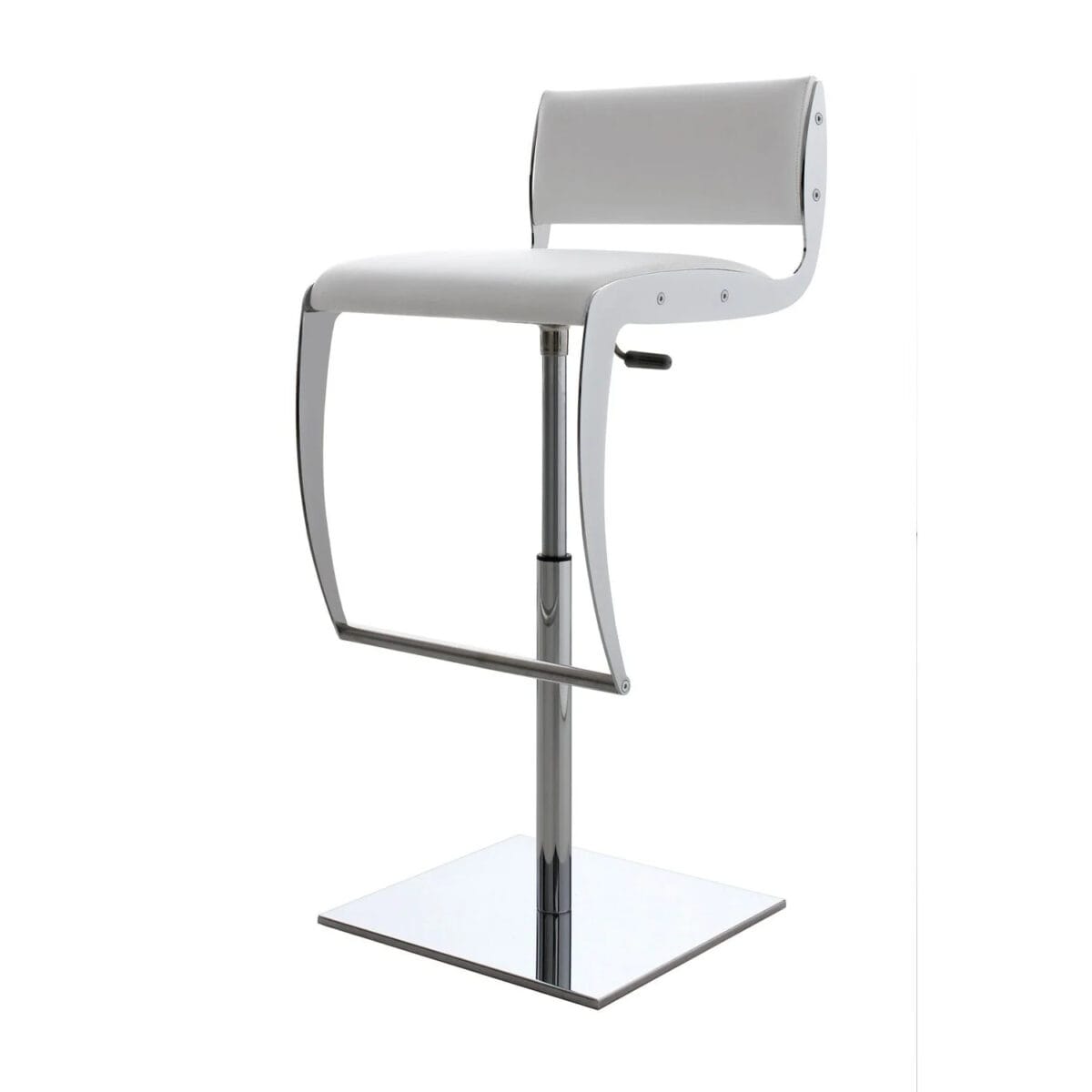 Металлический табурет с регулируемой высотой и подножкой. Сиденье и спинка обиты и покрыты кожей. Табурет для домашнего использования, отвечающий современным тенденциям в сфере мебели.